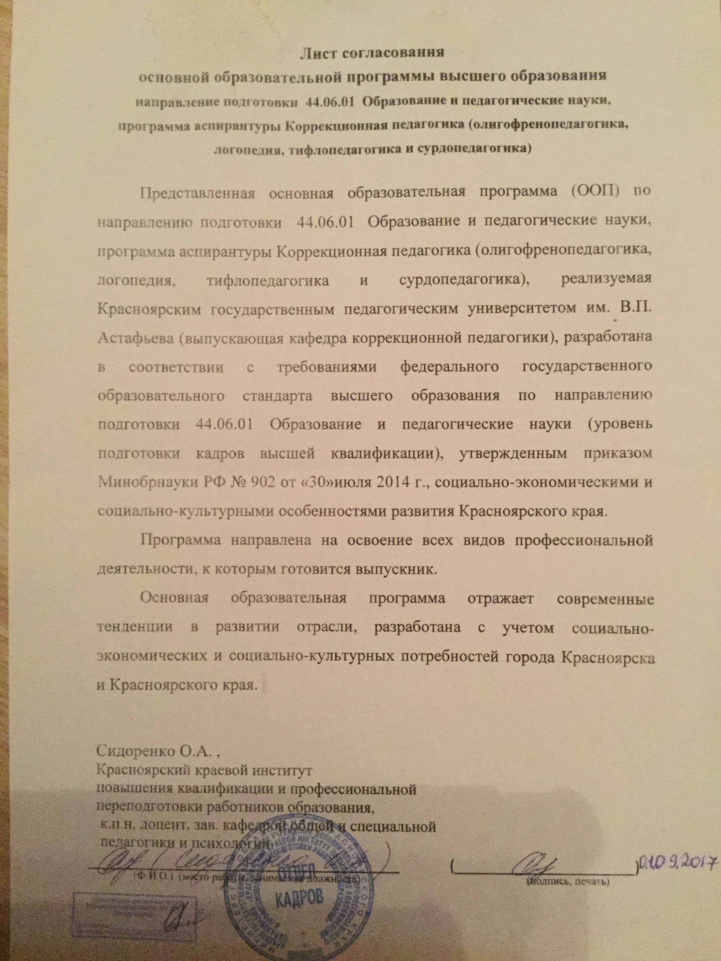 Аннотация основной профессиональной образовательной программы Коррекционная педагогика (сурдоедагогика, тифлопедагогика, олигофренопедагогика и логопедия)по направлению 44.06.01. Образование и педагогические науки Уровень образования: аспирантура_РПД_44.06.01_ Коррекционная педагогика (сурдопедагогика и тифлопедагогика, олигофренопедагогика и логопедия)