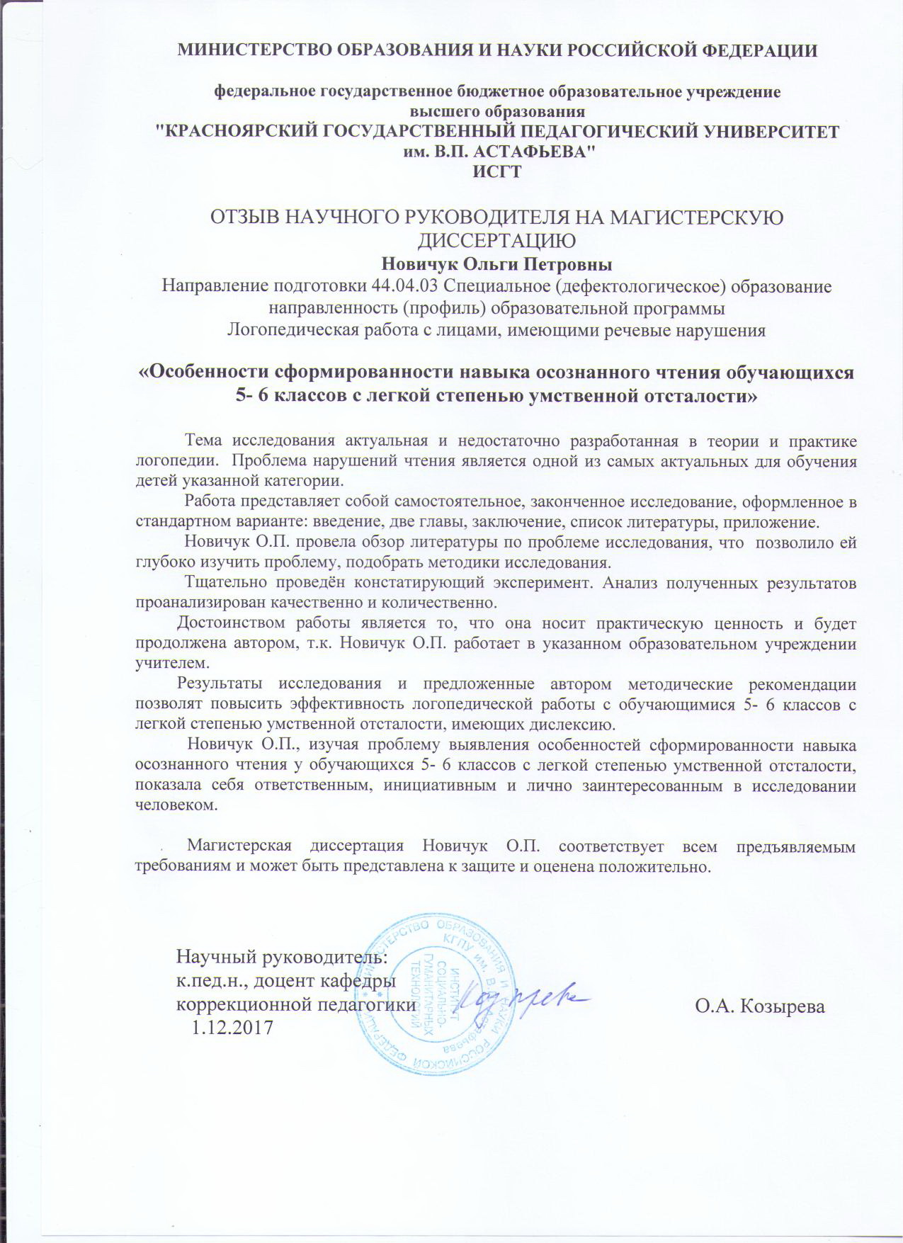 Особенности сформированности навыка осознанного чтения обучающихся 5-6 классов с легкой степенью умственной отсталости