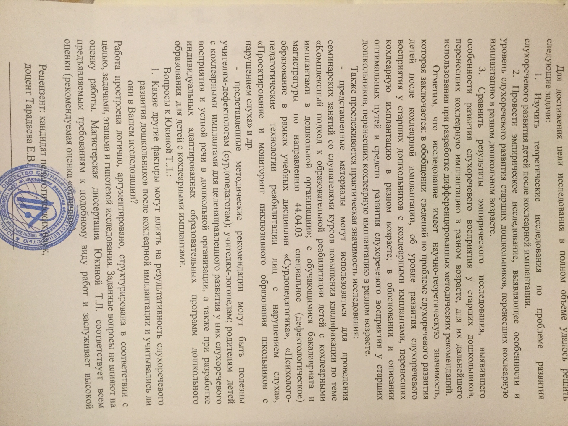 Сравнительное изучение особенностей слухоречевого развития старших дошкольников, перенесших кохлеарную имплантацию в разном возрасте