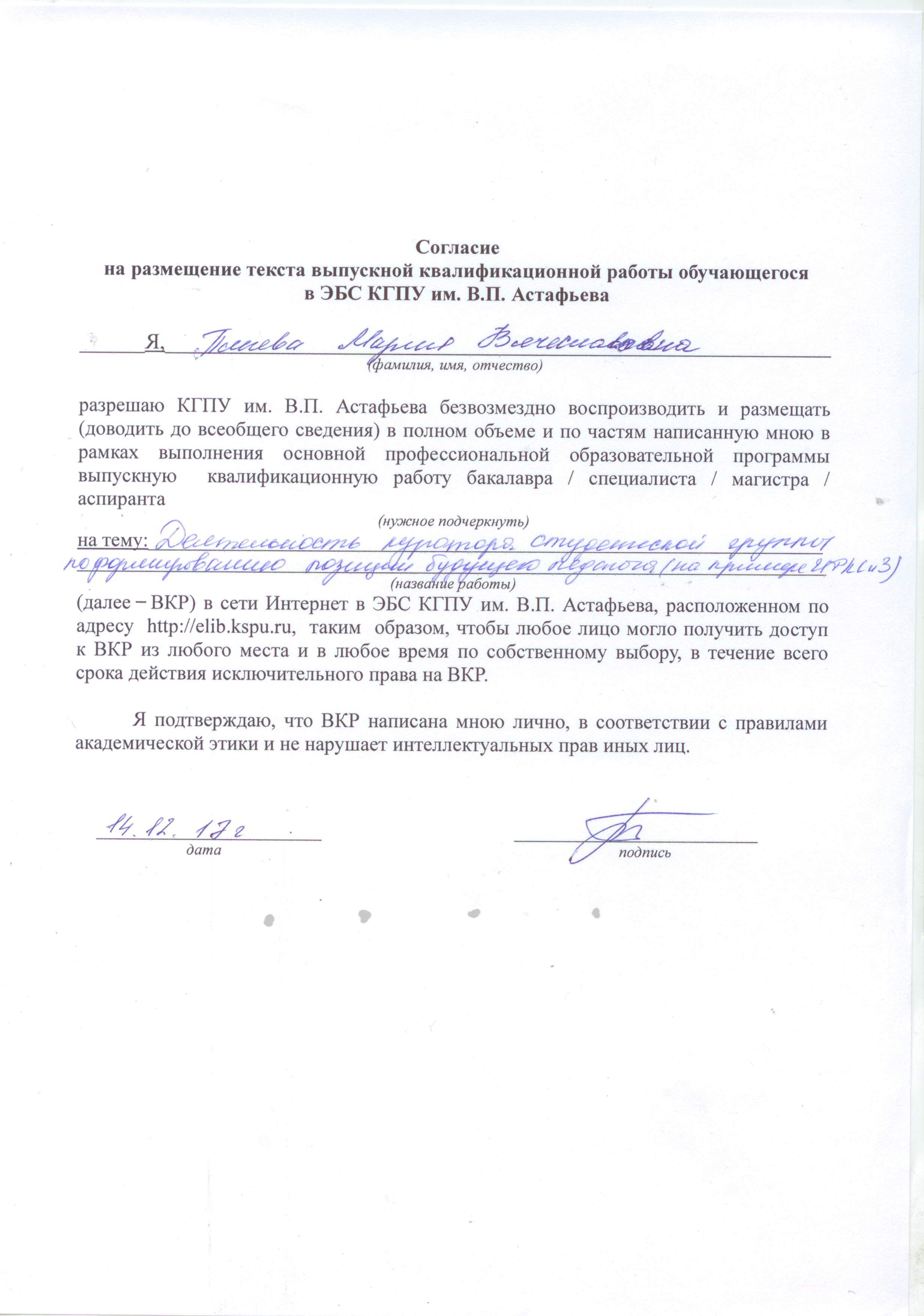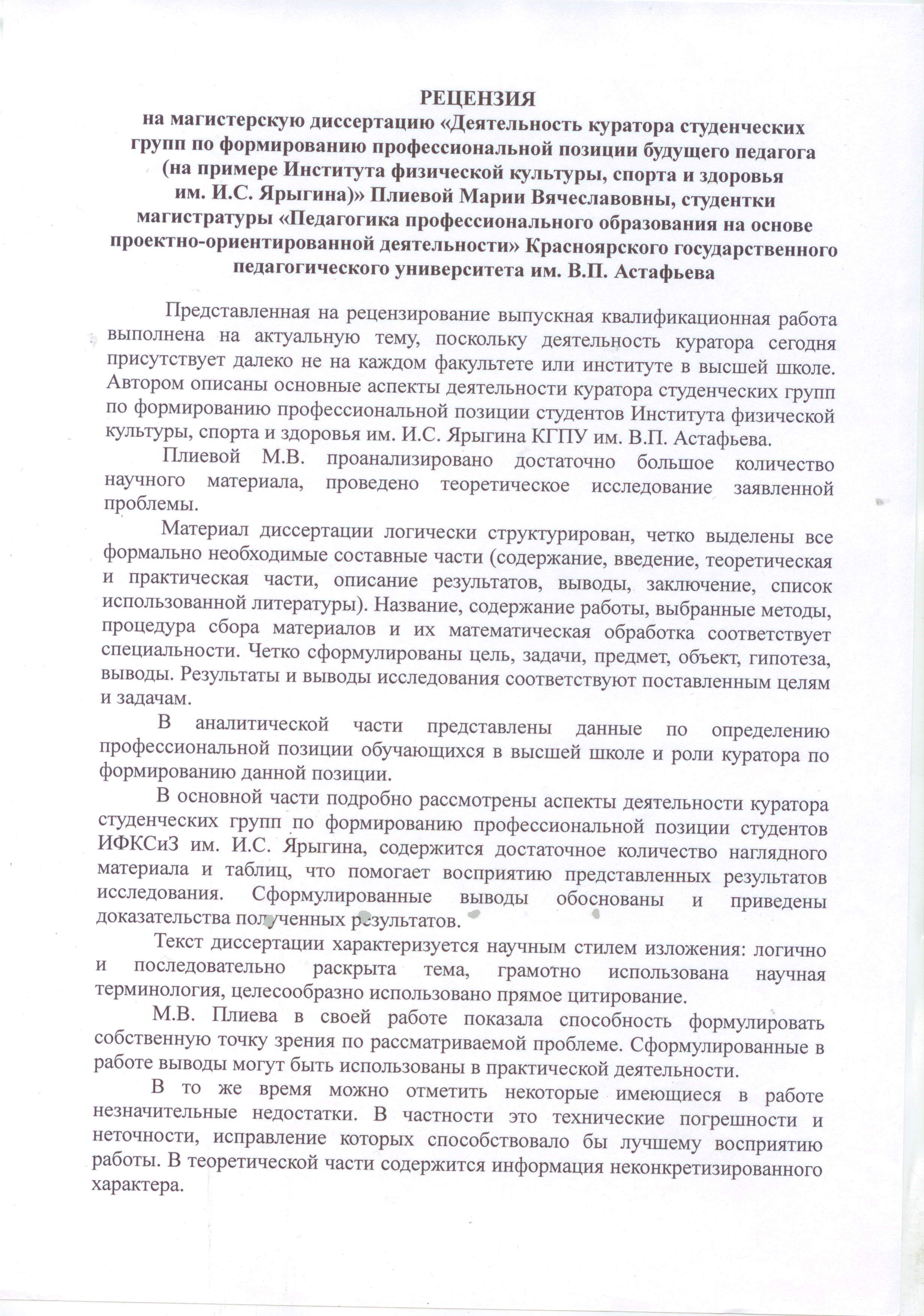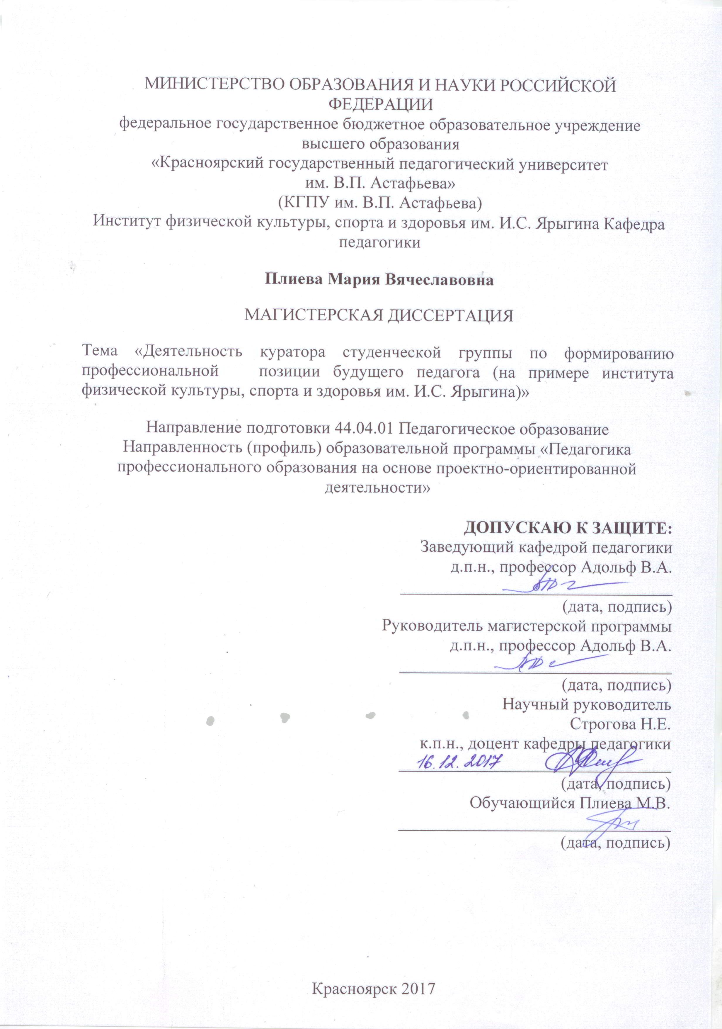 «Деятельность куратора студенческой группы по формированию профессиональной позиции будущего педагога (на примере института физической культуры, спорта и здоровья им. И.С. Ярыгина)»