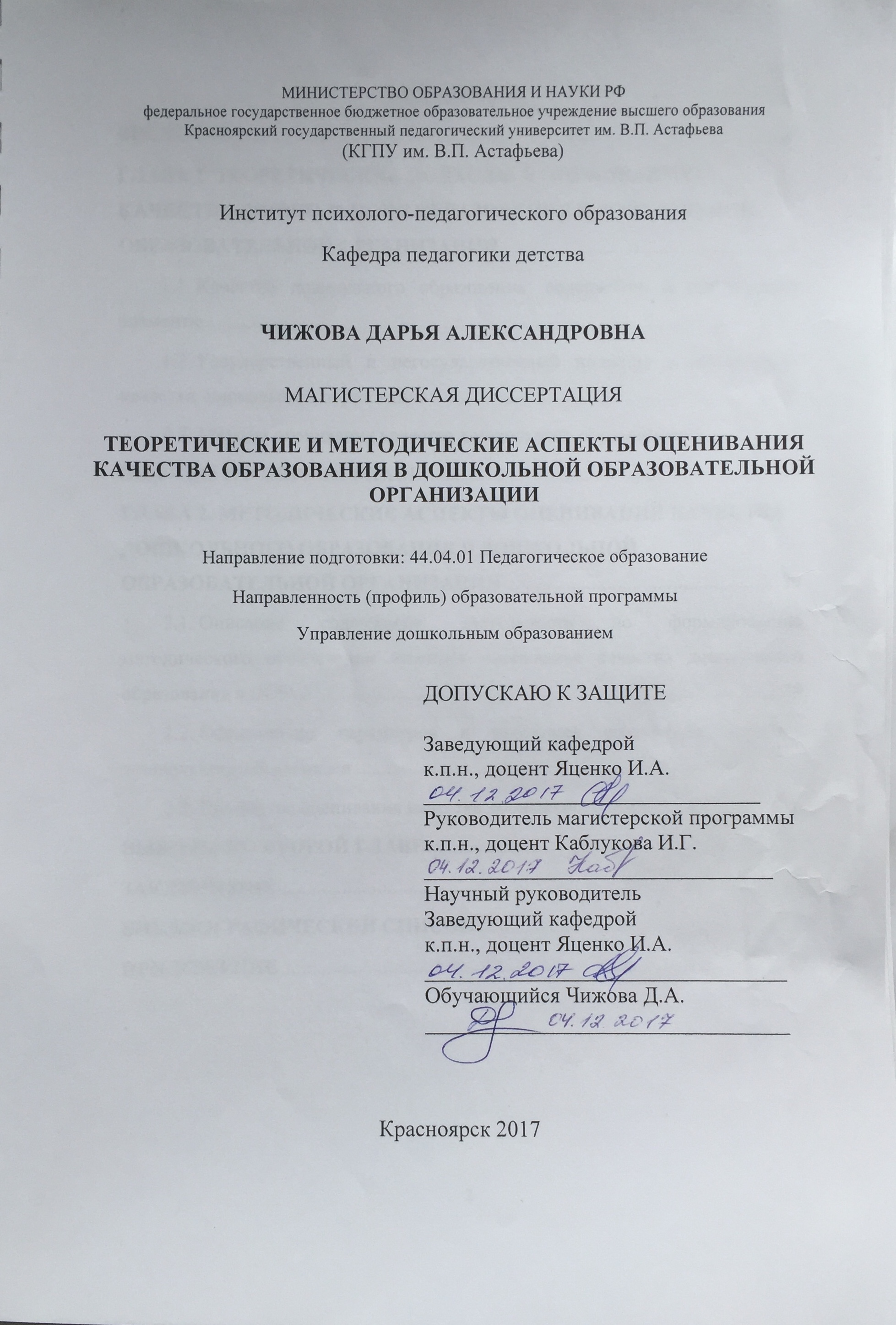 Теоретические и методические аспекты оценивания качества дошкольного образования в дошкольной образовательной организации