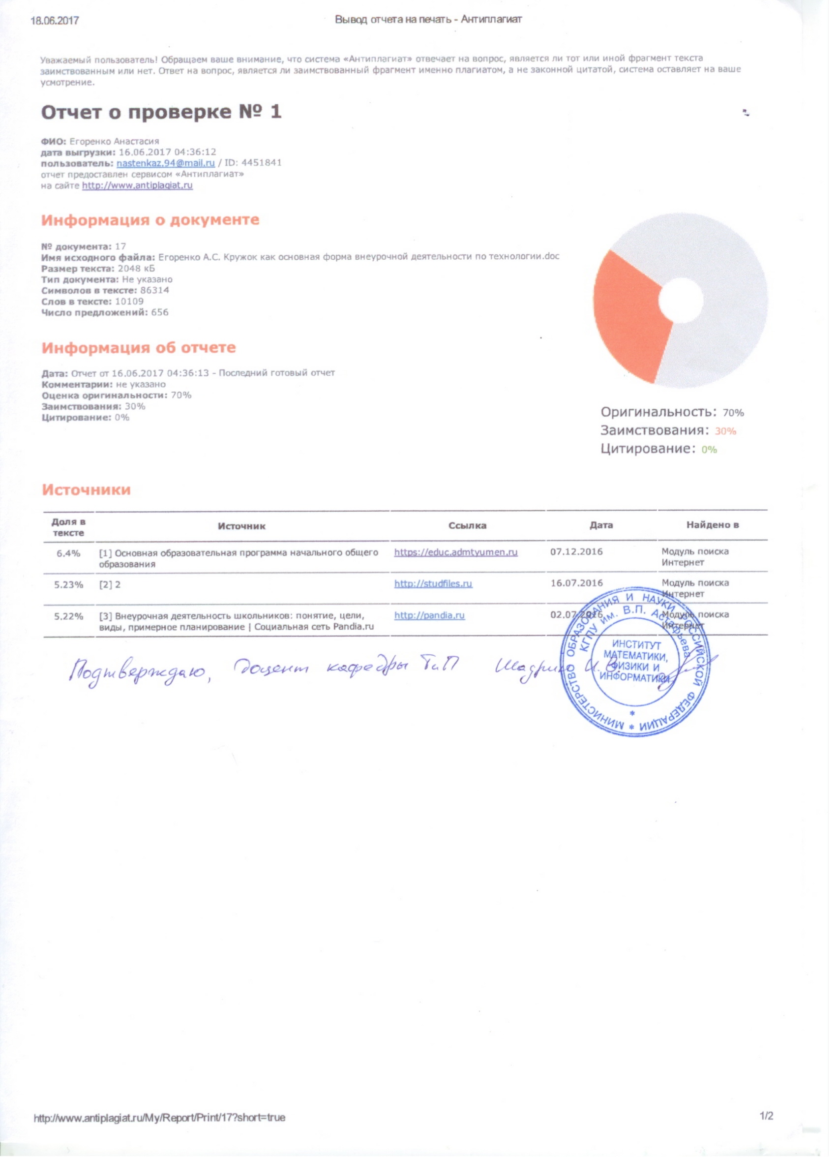 Кружок как основная форма внеурочногй деятельности по технологии.