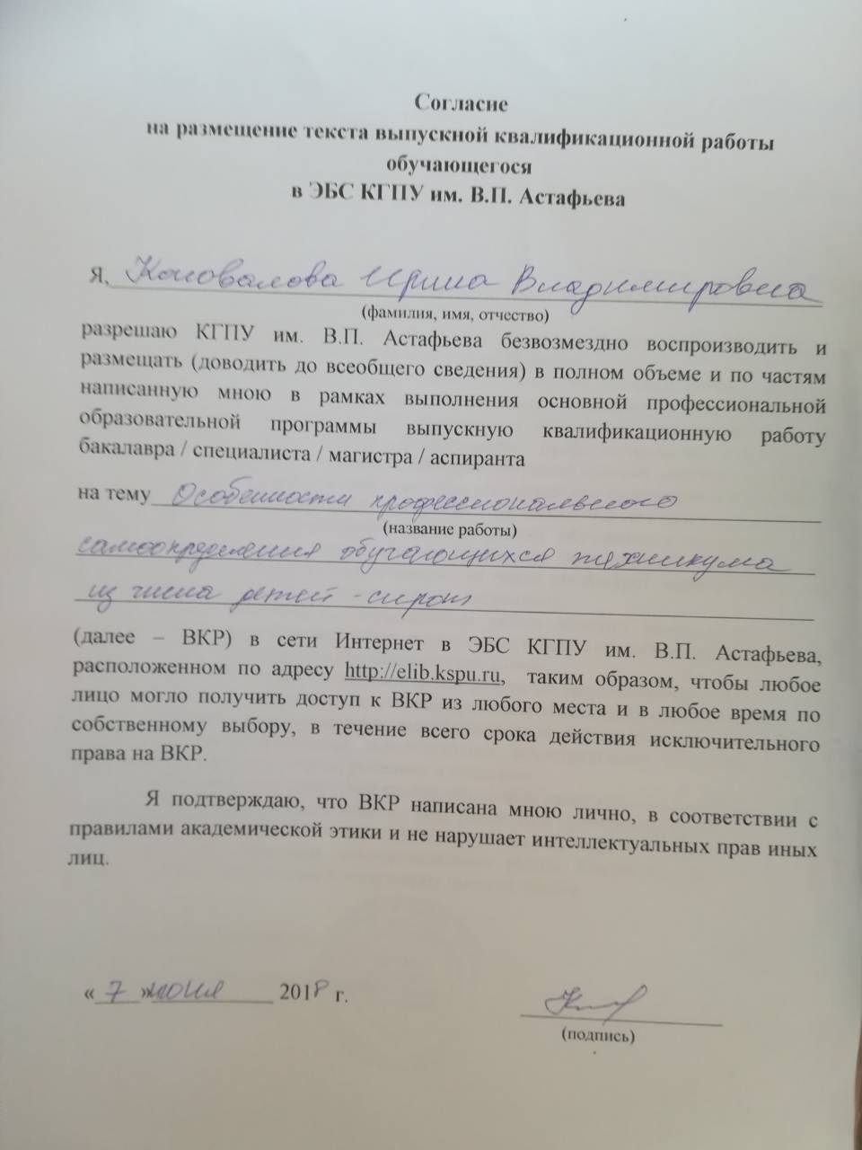 Особенности профессионального самоопределения обучающихся техникума из числа детей-сирот