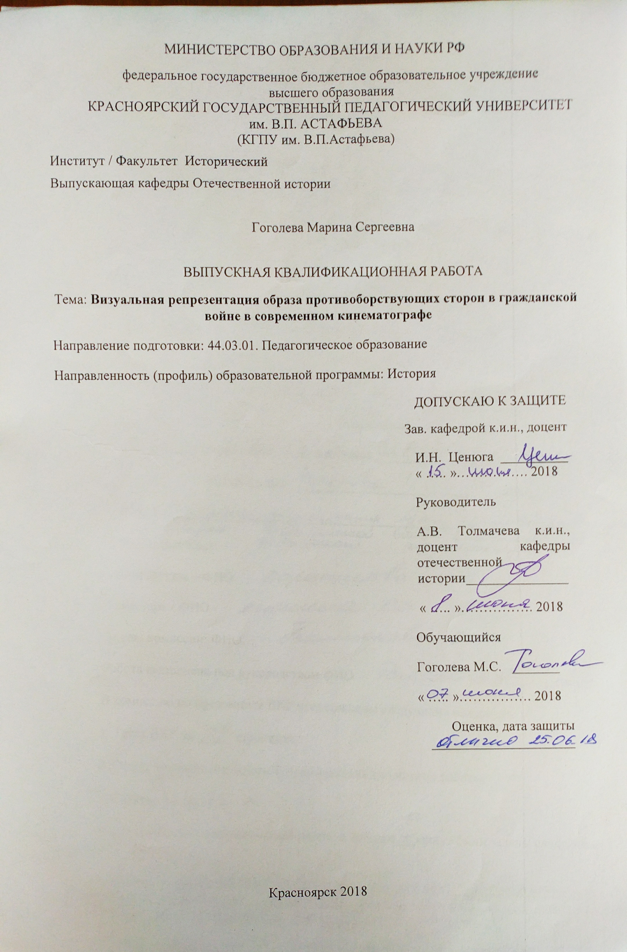 Визуальная репрезентация образа противоборствующих сторон в Гражданской войне в соременном российском кинематографе