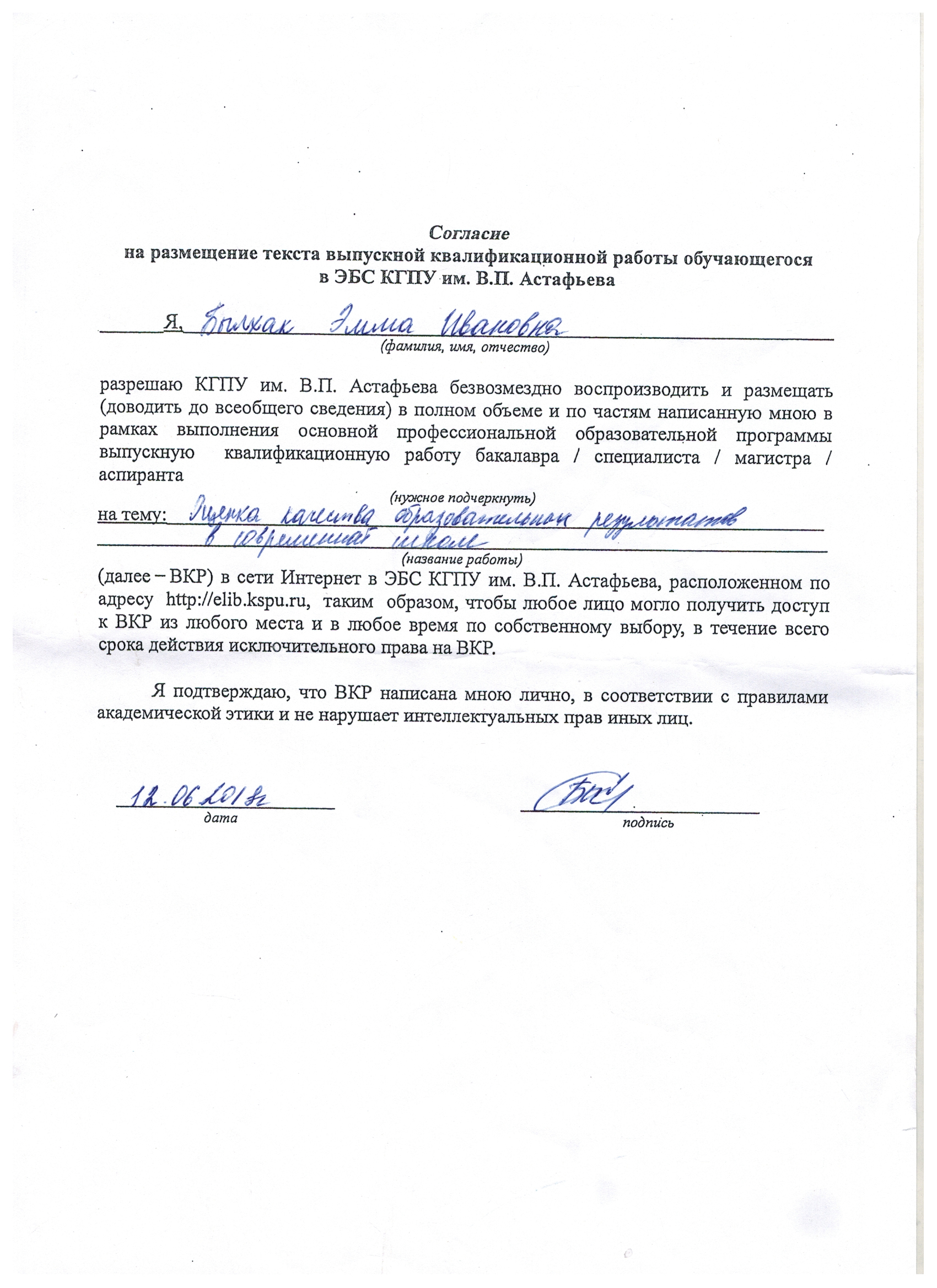 ВКР "Оценка качества образовательных результатов в современной школе"