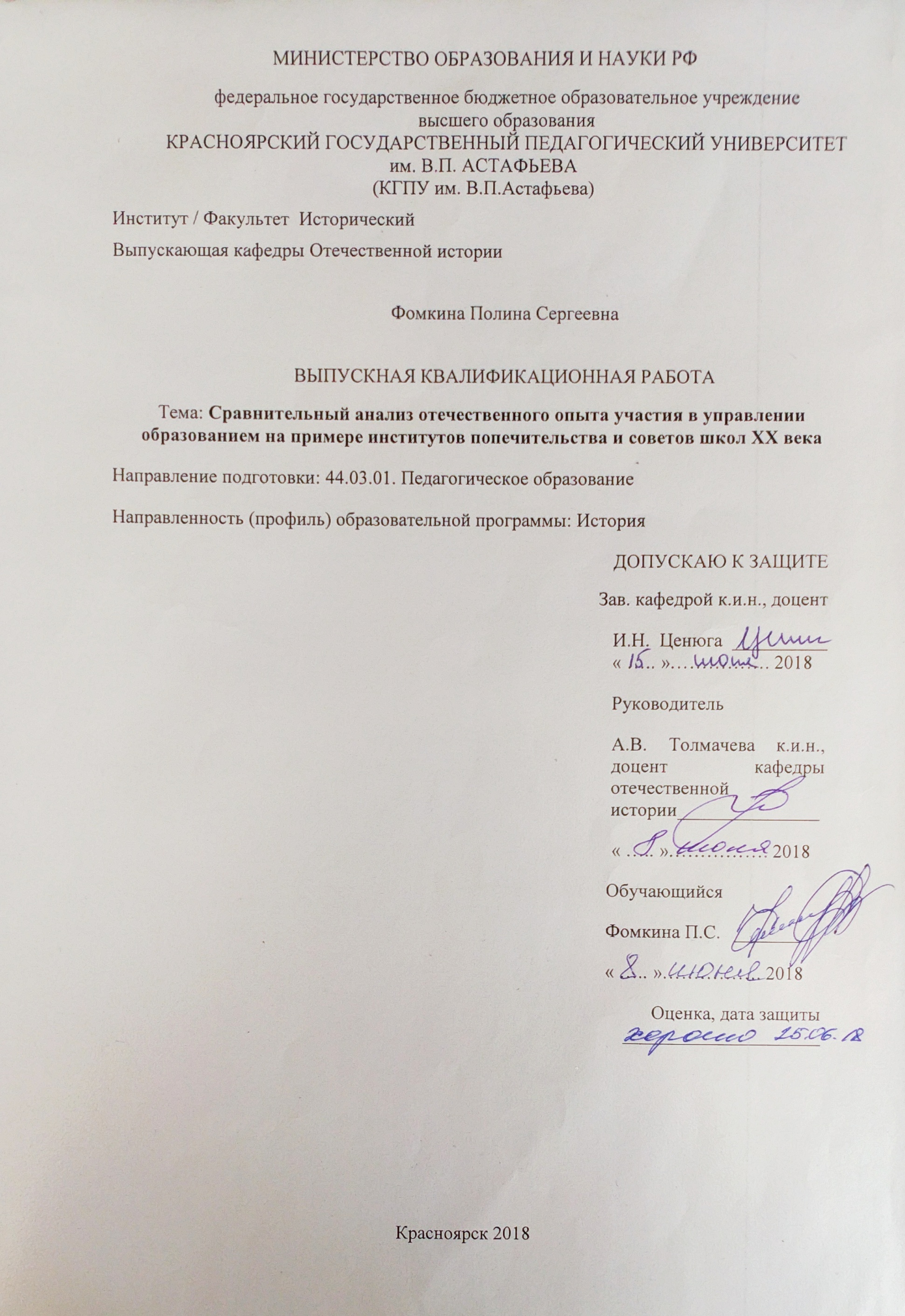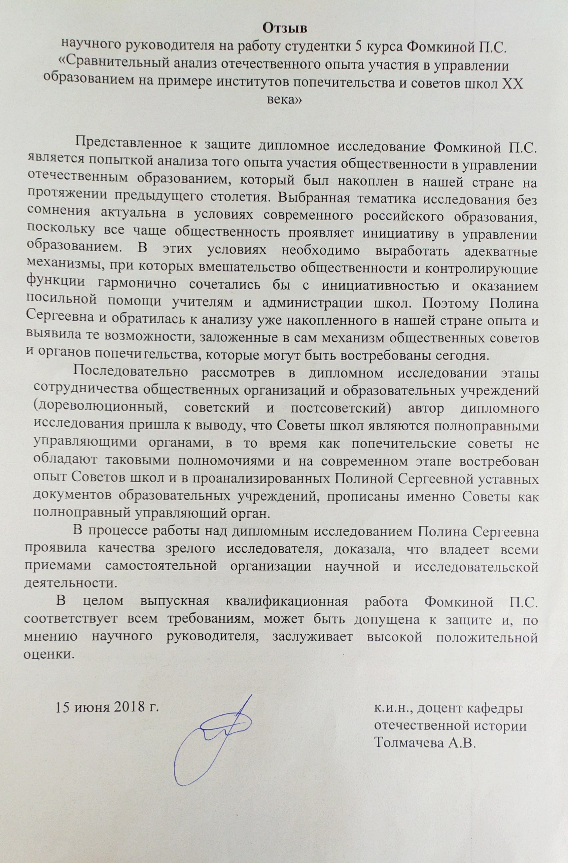 Сравнительный анализ отечественного опыта участия в управлении образованием на примере институтов попечительства и советов школ 20 века