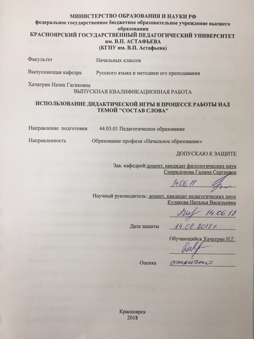 "Использование дидактической игры в процессе работы над темой "Состав слова""
