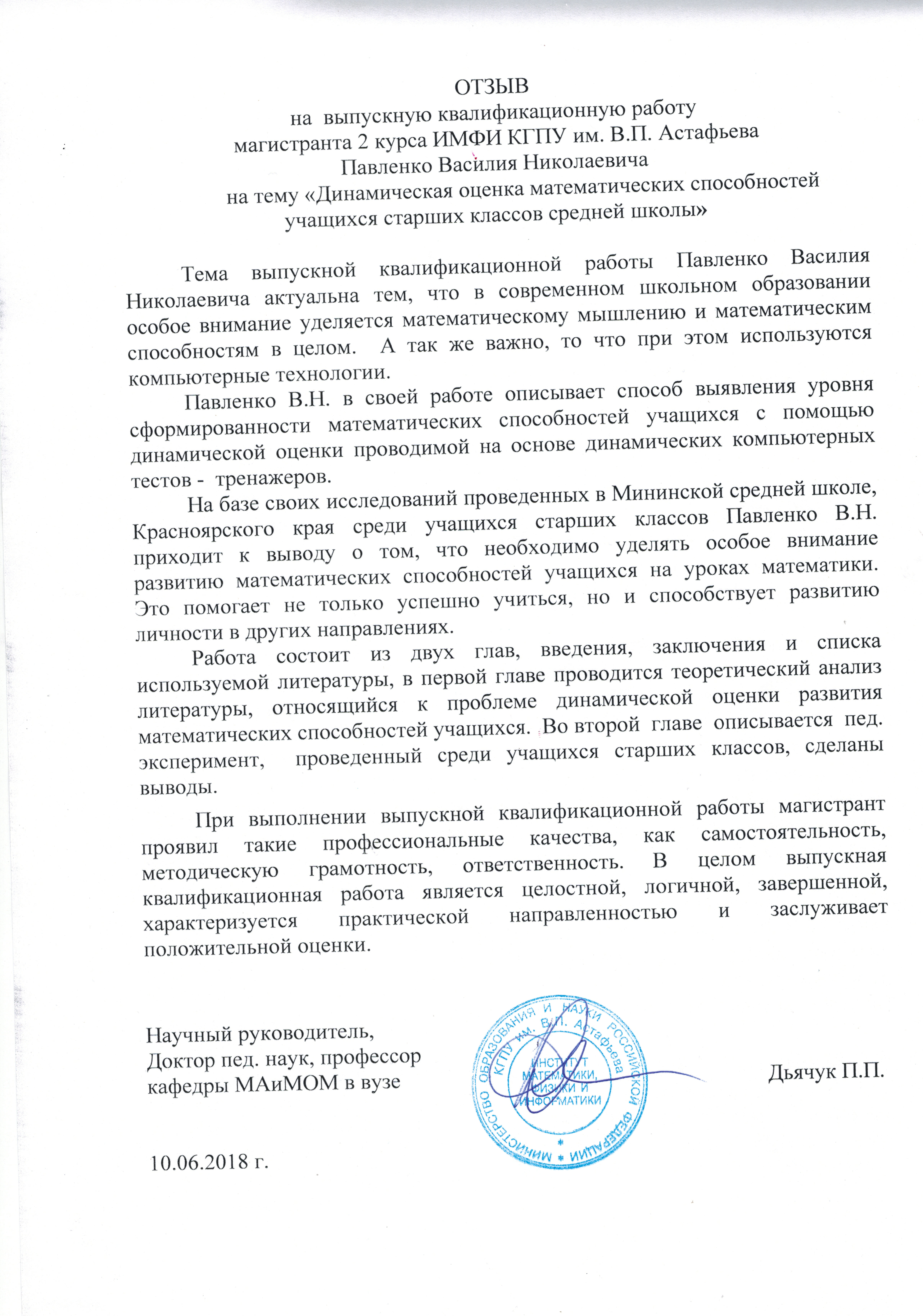 Динамическая оценка математических способностей учащихся старших классов средней школы