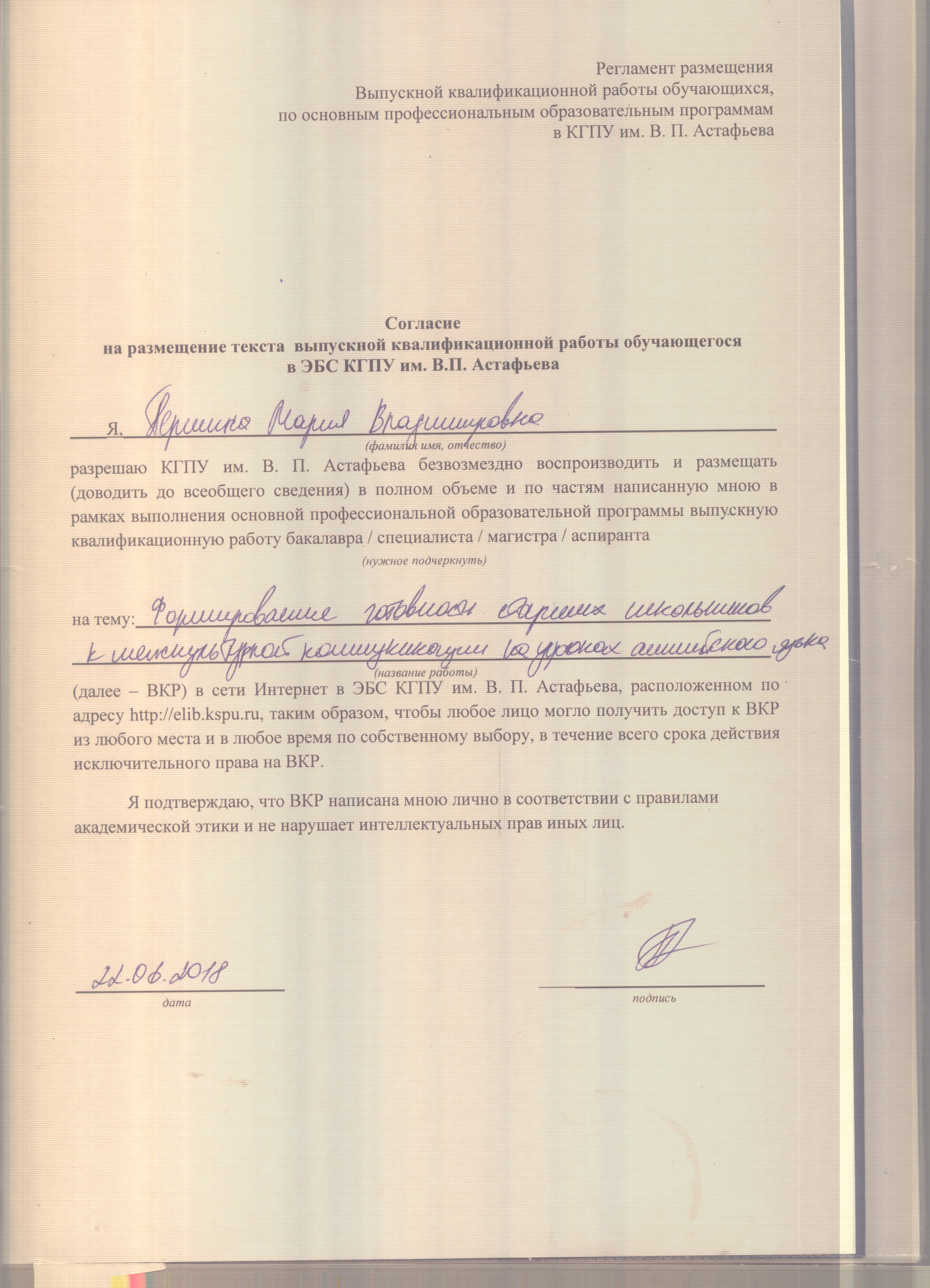 Формирование готовности старших школьников к межкультурной коммуникации на уроках английского языка