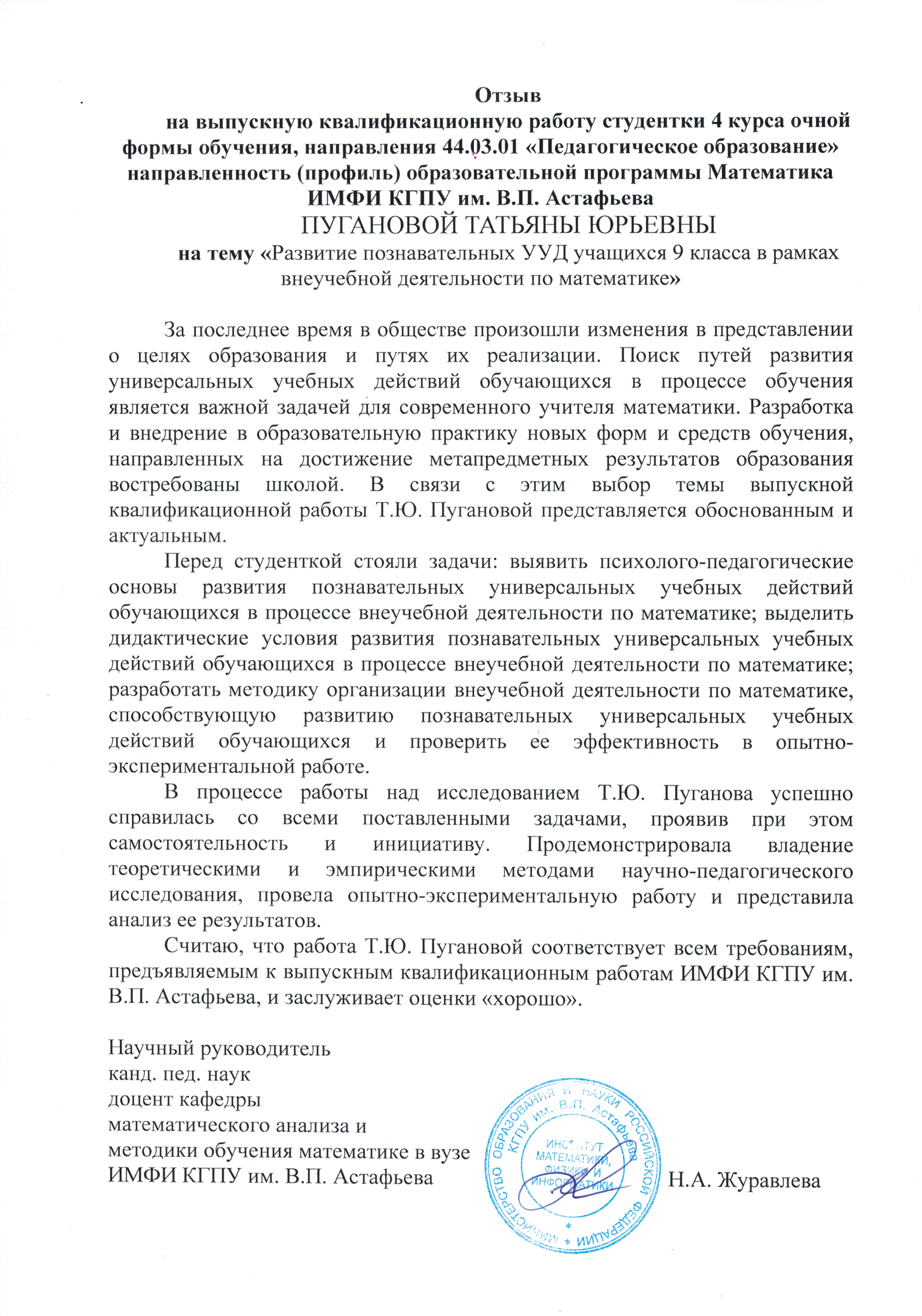 Развитие познавательных УУД учащихся 9 класса в рамках внеучебной деятельности по математике