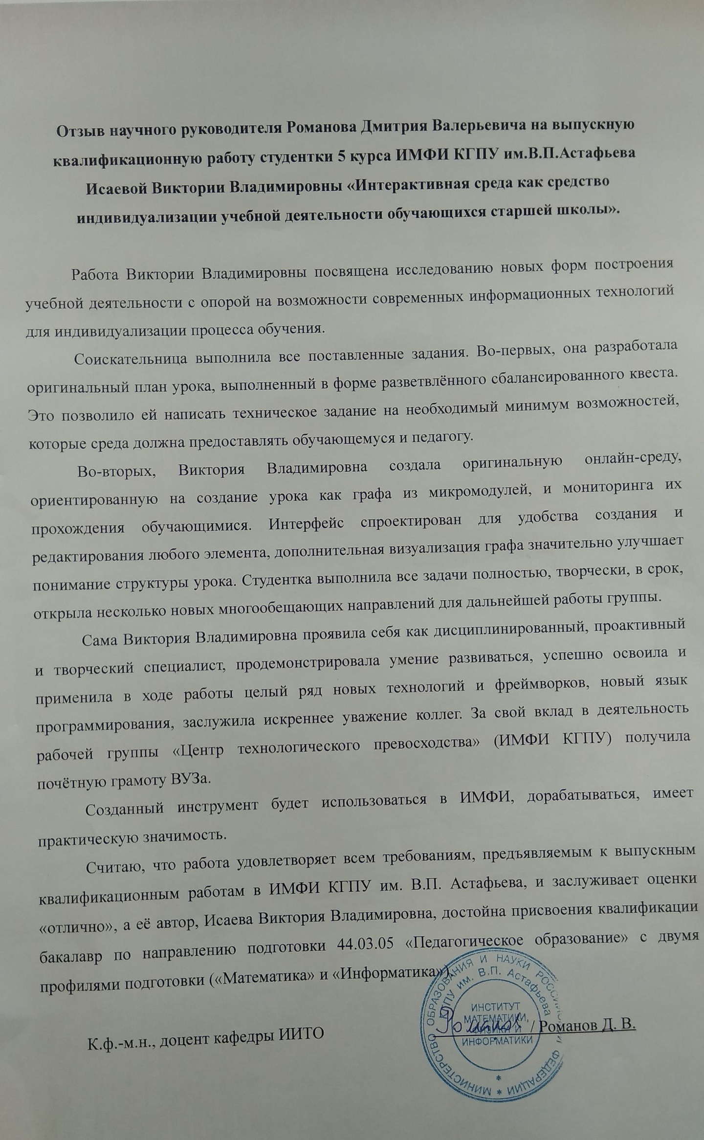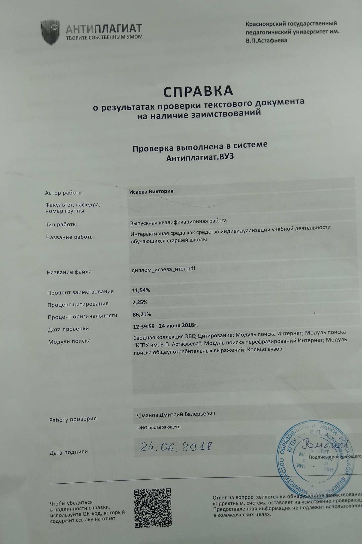 Интерактивная среда как средство индивидуализации учебной деятельности обучающихся старшей школы