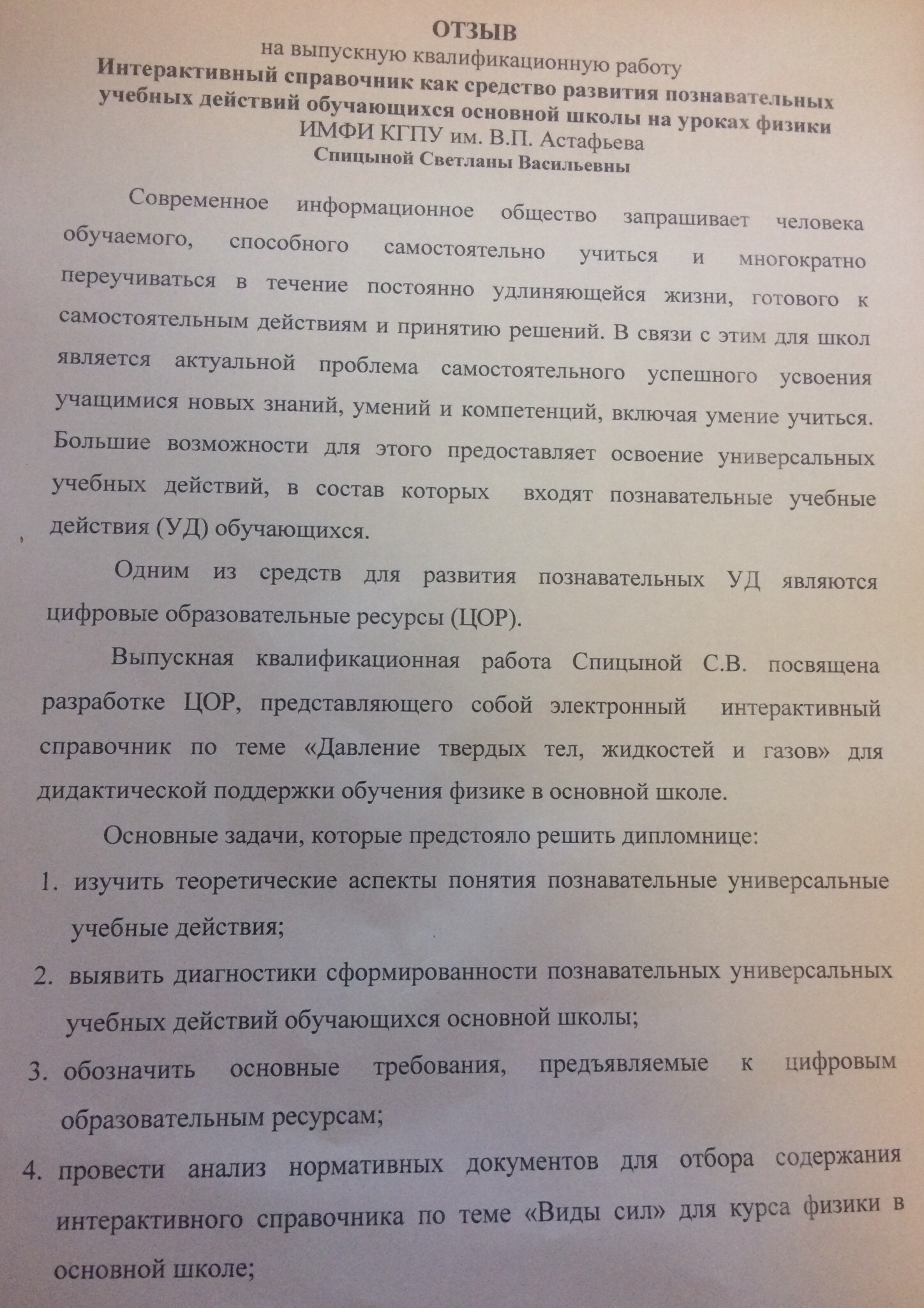 Интерактивный справочник как средство развития познавательных учебных действий обучающихся основной школы на уроках физики