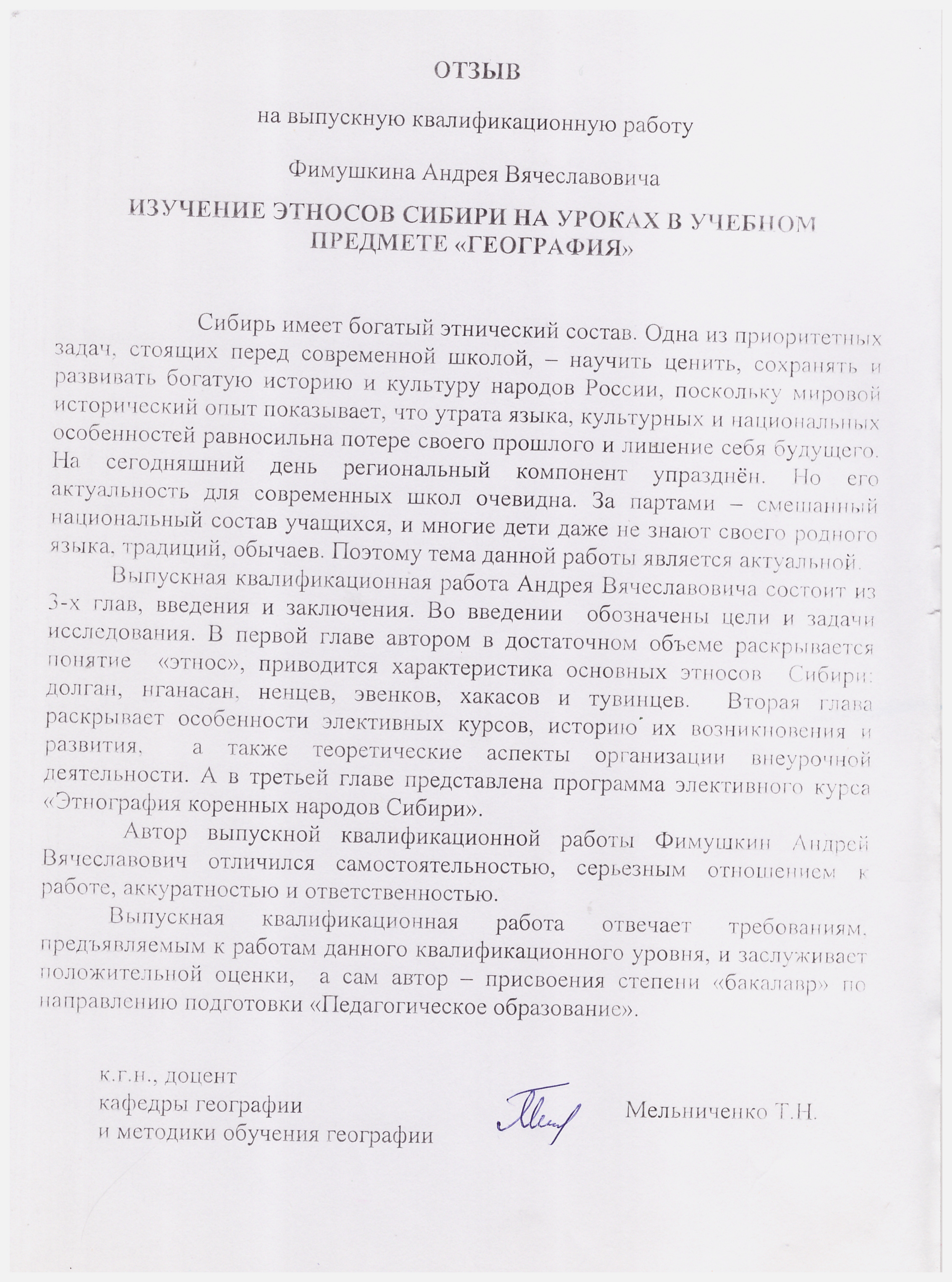 Изучение этносов Сибири в учебном предмете "География"