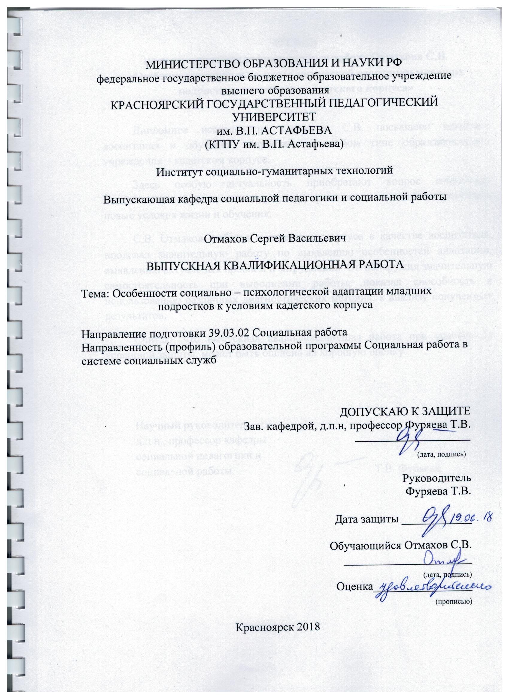 Особенности социально-психологической адаптации младших подростков к условиям кадетского корпуса