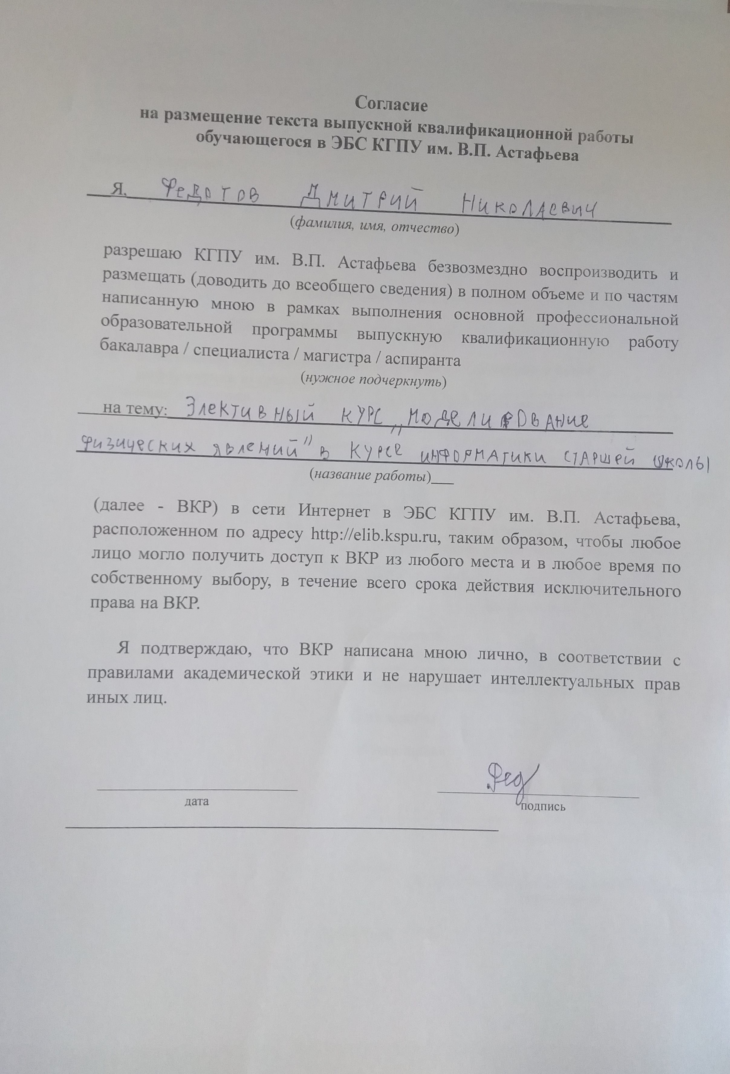 Элективный курс "Моделирование физических явлений" в курсе информатики старшей школы