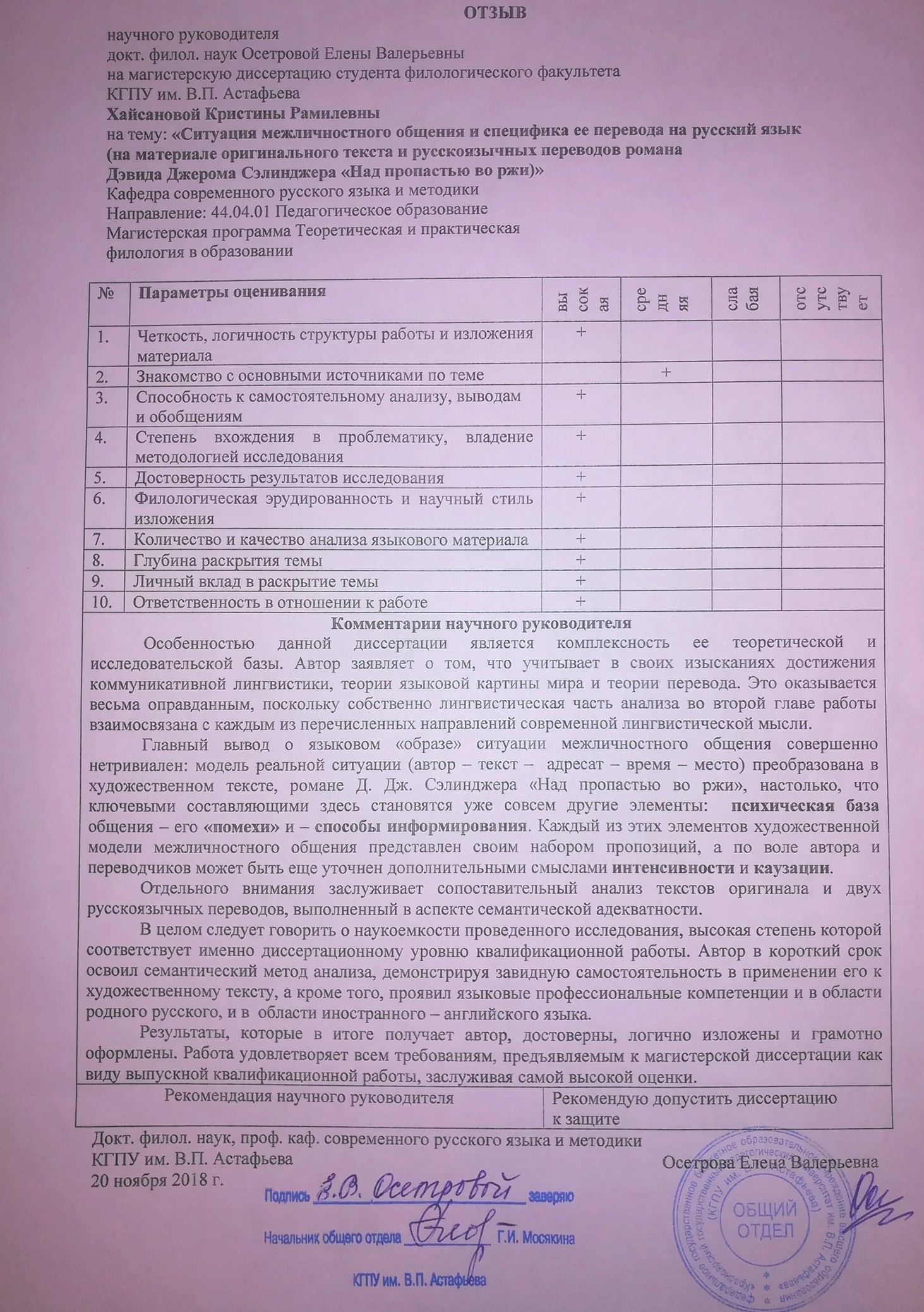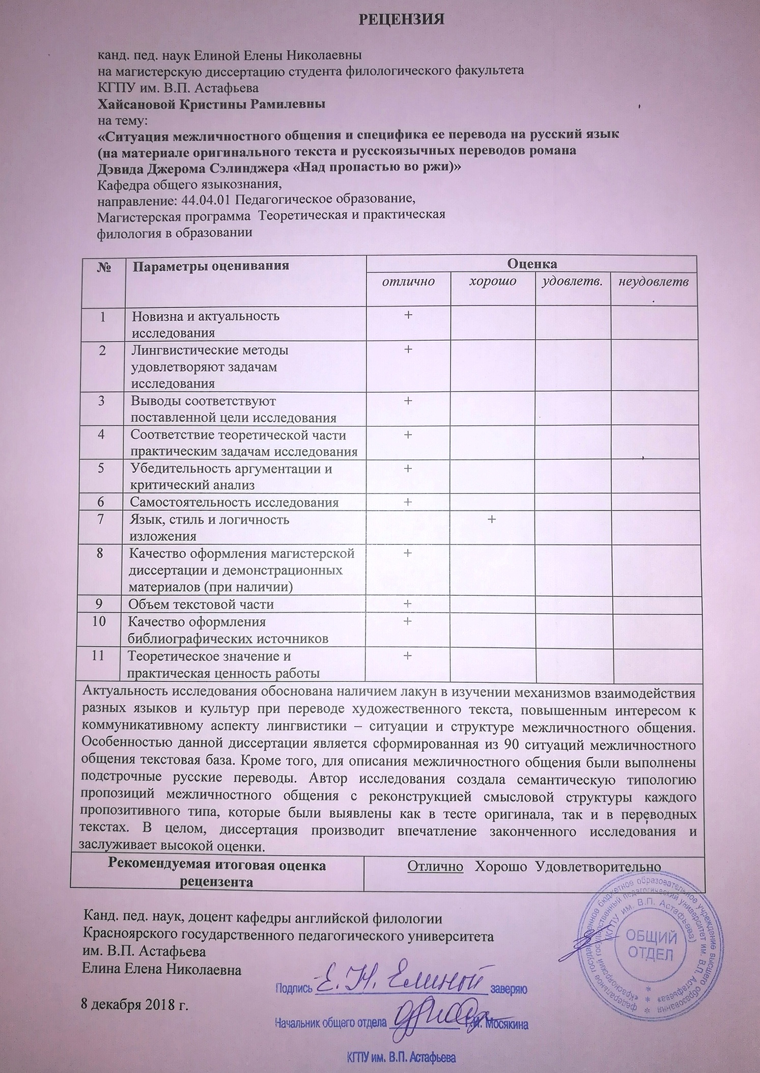 Ситуация межличностного общения и специфика ее перевода на русский язык (на материале оригинального текста и русскоязычных переводов романа Дэвида Джерома Сэлинджера «Над пропастью во ржи)