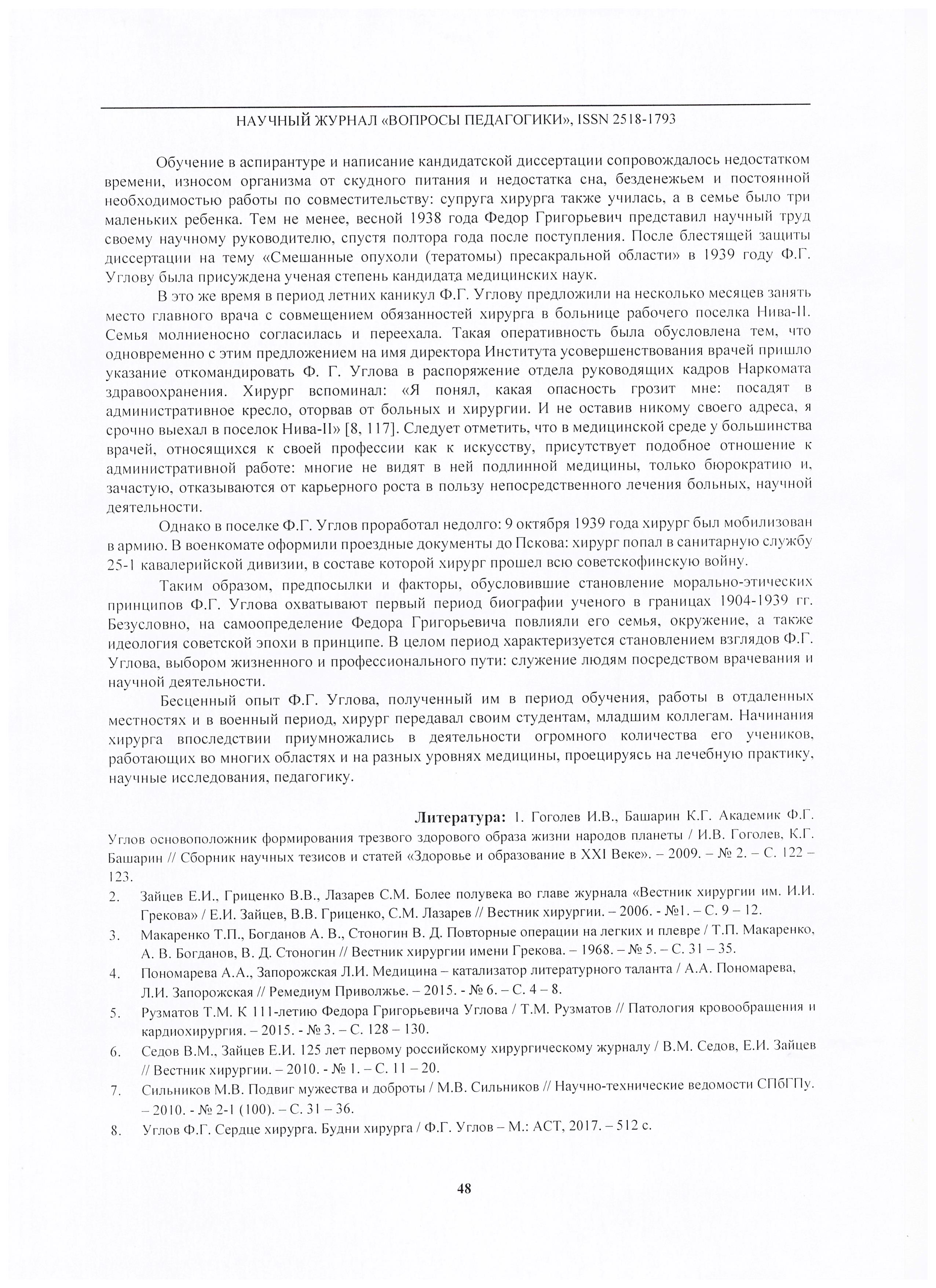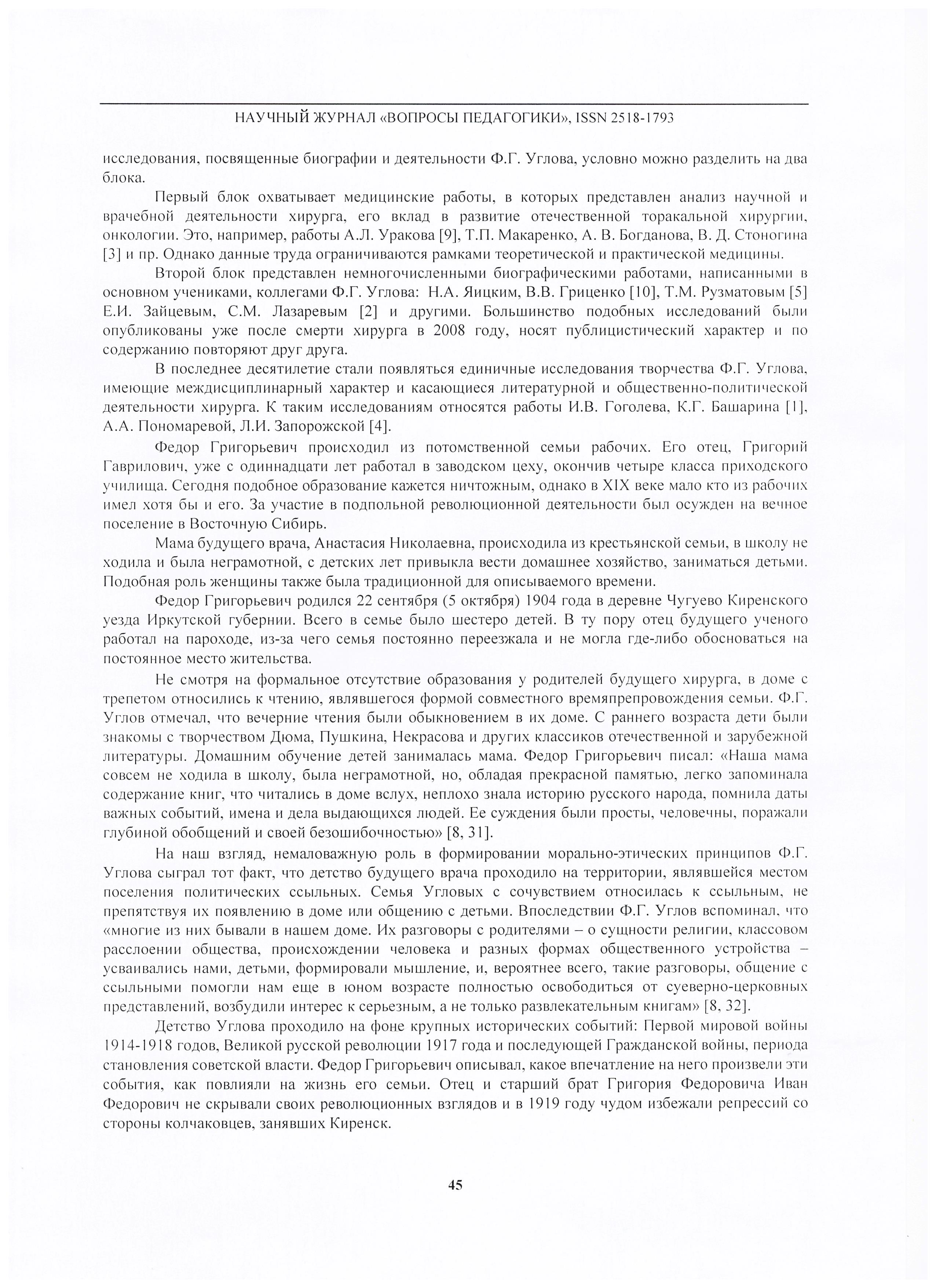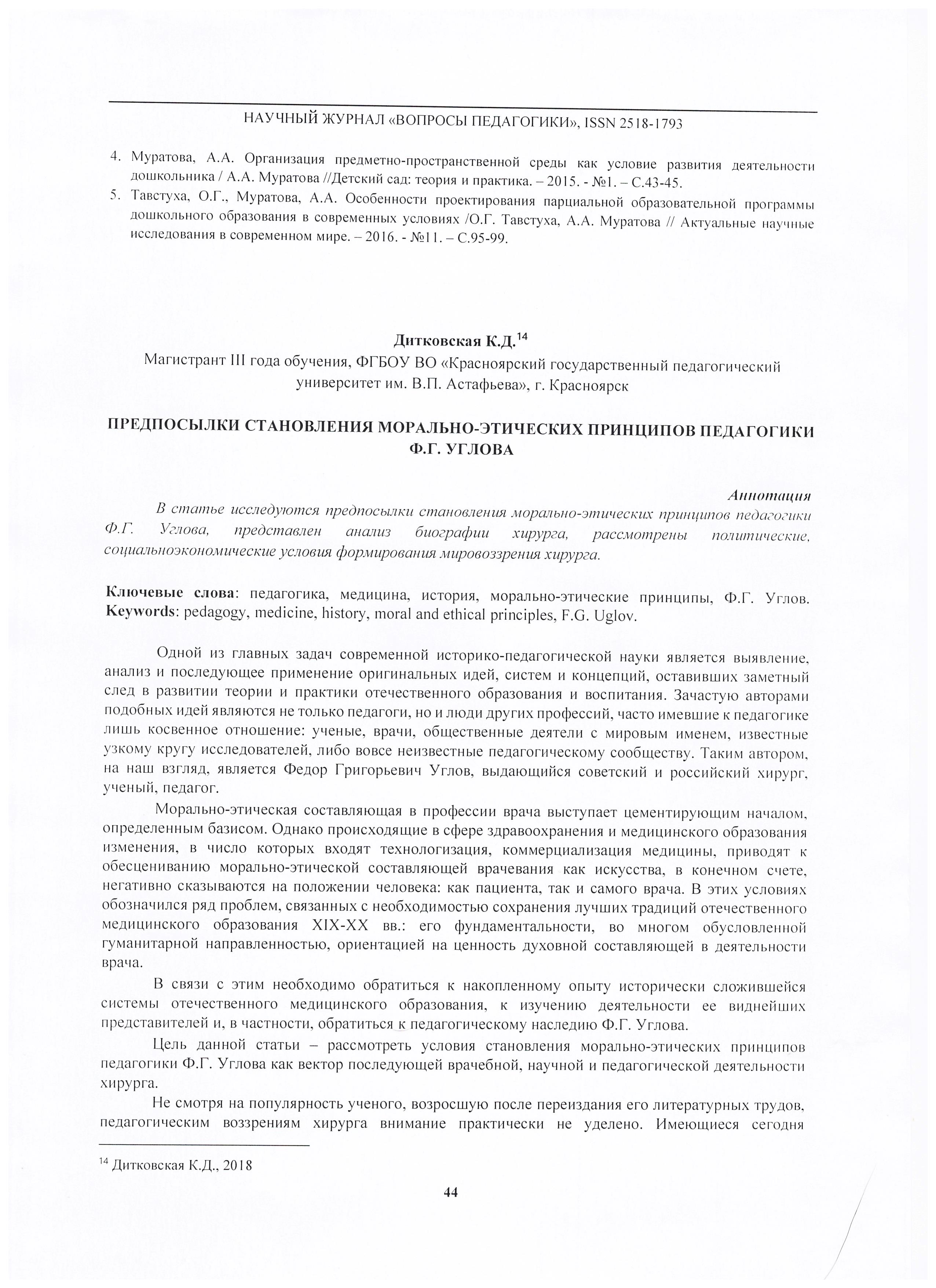 Морально-этические принципы педагогики Ф.Г. Углова