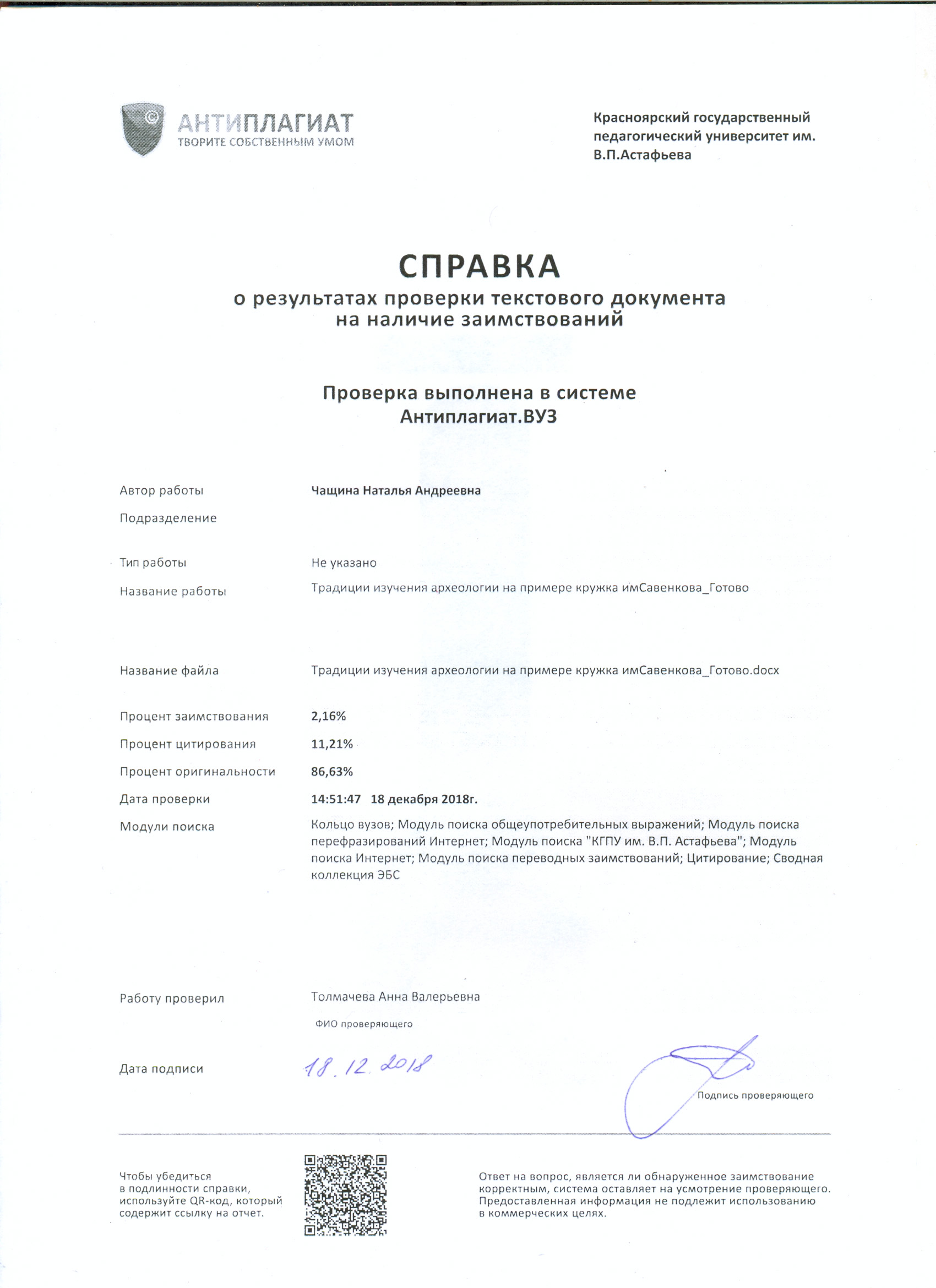 Традиции зучения археологии на примере кружка им. И.Т. Савенкова