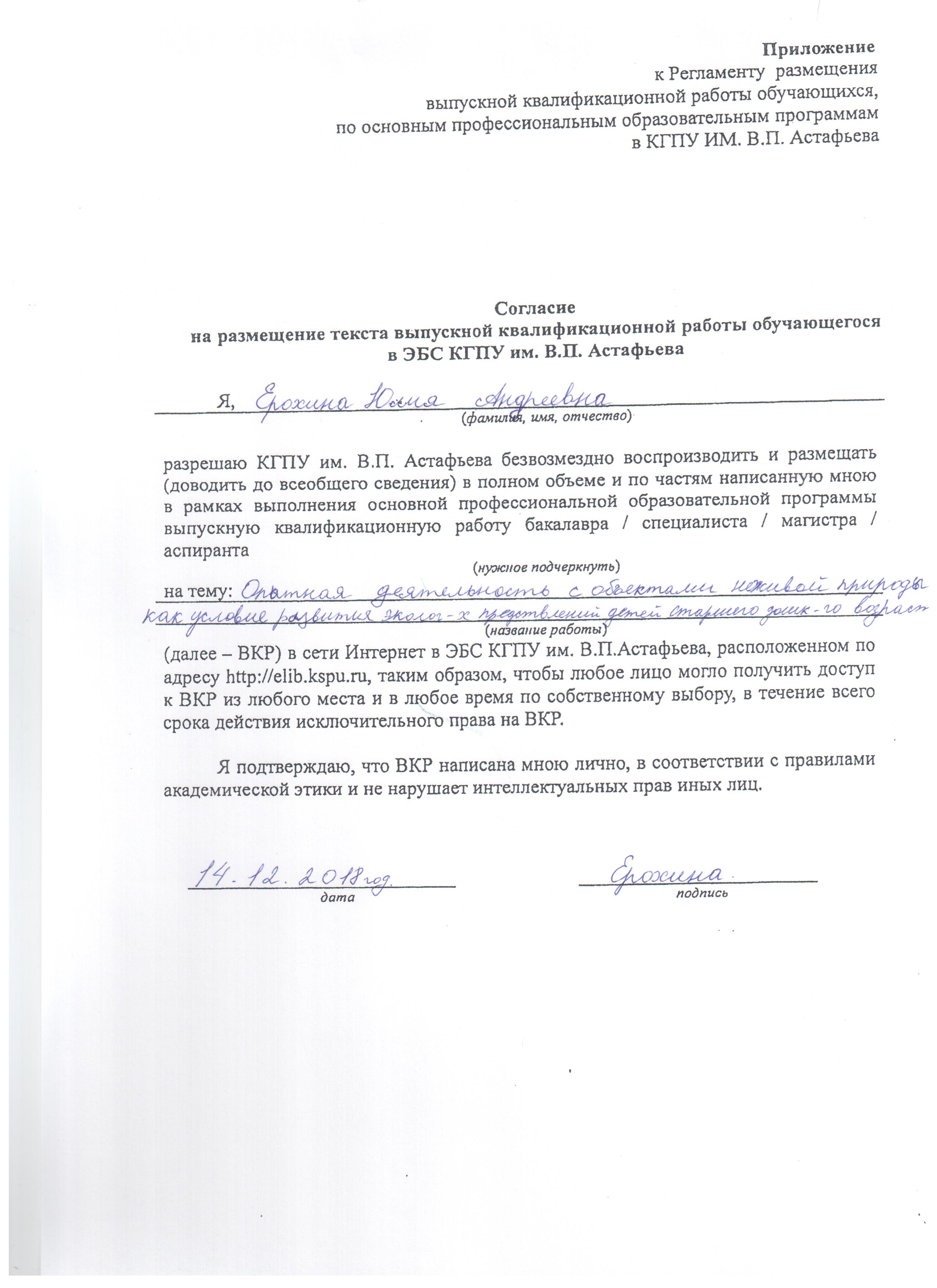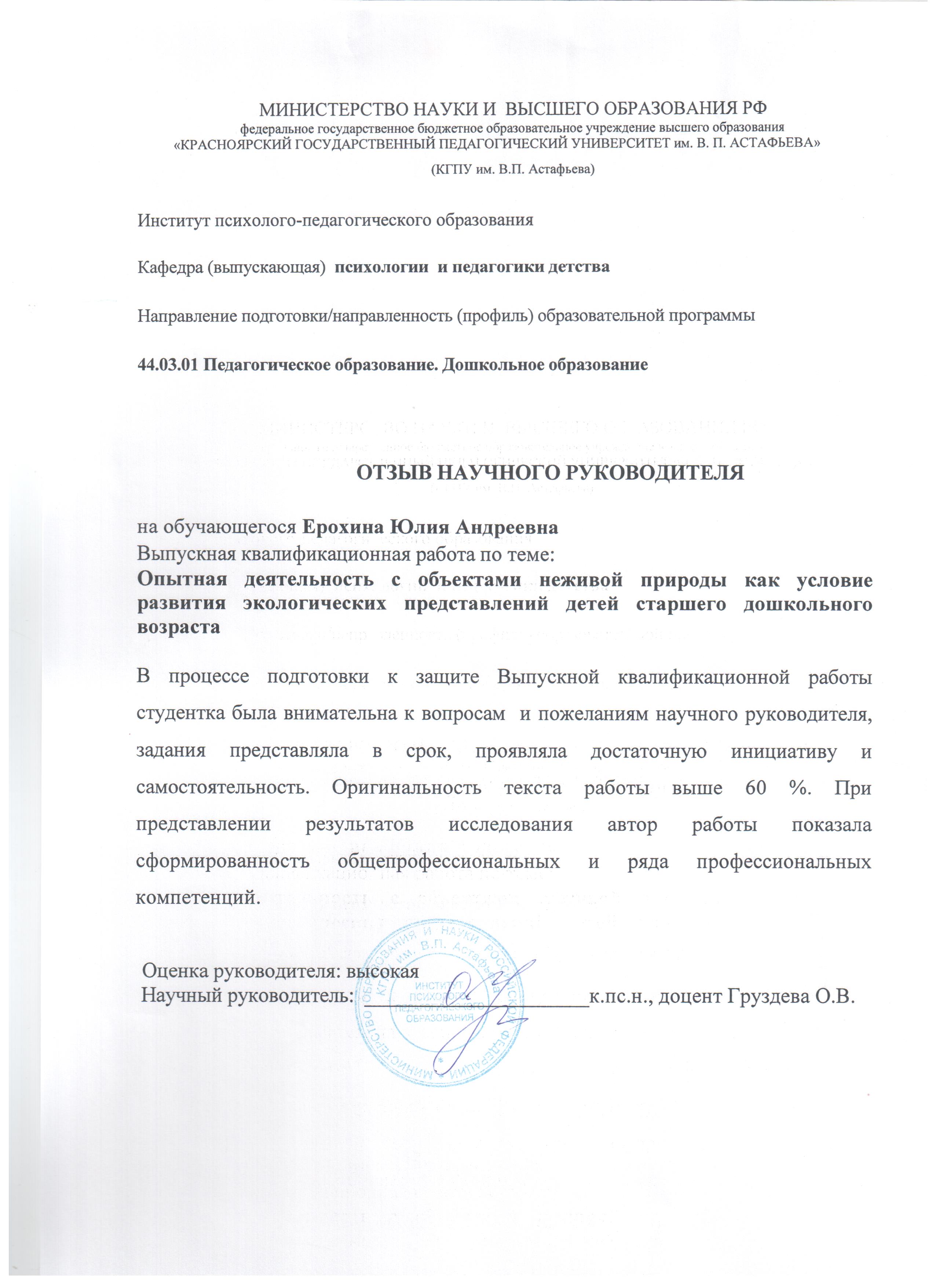 Ерохина Ю. А. ВКР ОПЫТНАЯ ДЕЯТЕЛЬНОСТЬ С ОБЪЕКТАМИ НЕЖИВОЙ ПРИРОДЫ КАК УСЛОВИЕ РАЗВИТИЯ ЭКОЛОГИЧЕСКИХ ПРЕДСТАВЛЕНИЙ ДЕТЕЙ СТАРШЕГО ДОШКОЛЬНОГО ВОЗРАСТА