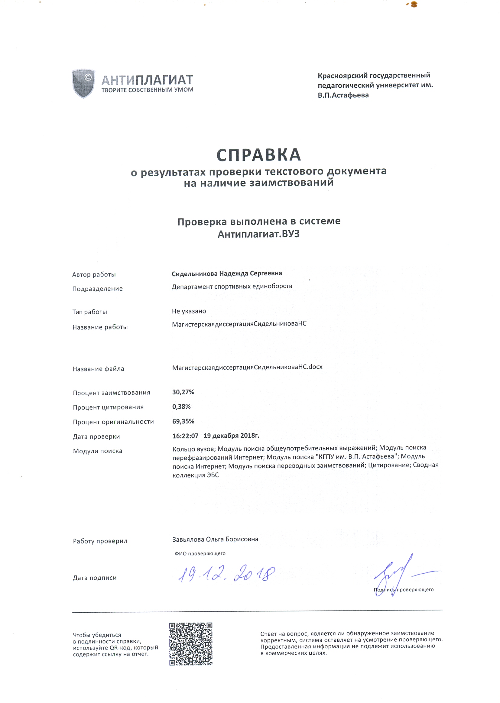 Сидельникова Надежда Сергеевна «Повышение результативности занятий в фитнесе для женщин на основе учета их индивидуальных особенностей»