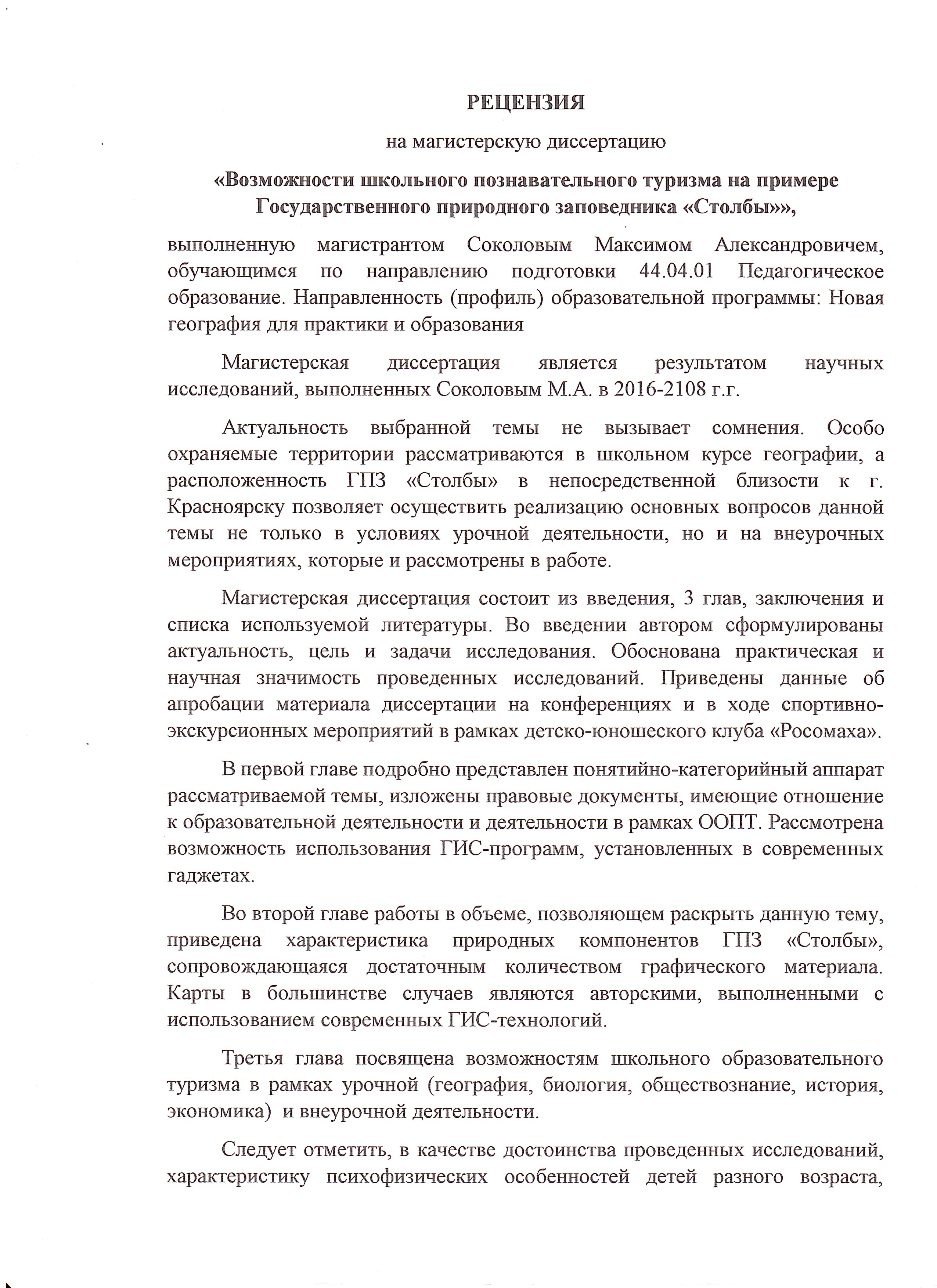 Возможности школьного познавательного туризма на примере Государственного природного заповедника «Столбы»