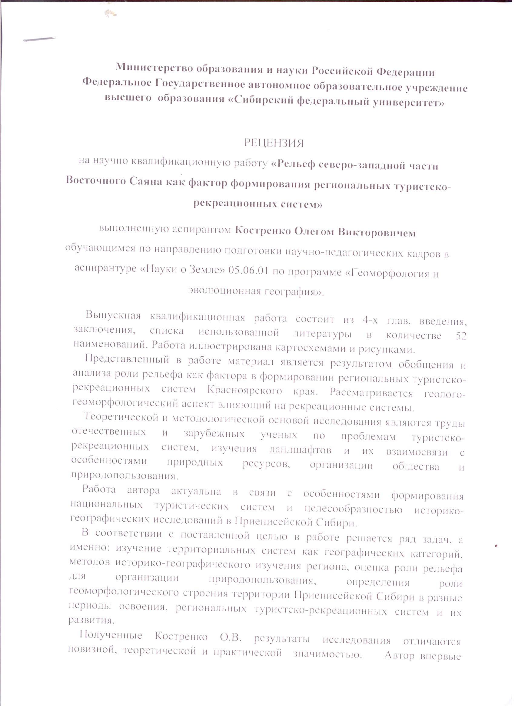 Рельеф северо-западной части Восточного Саяна как фактор формирования региональных туристско-рекреационных систем