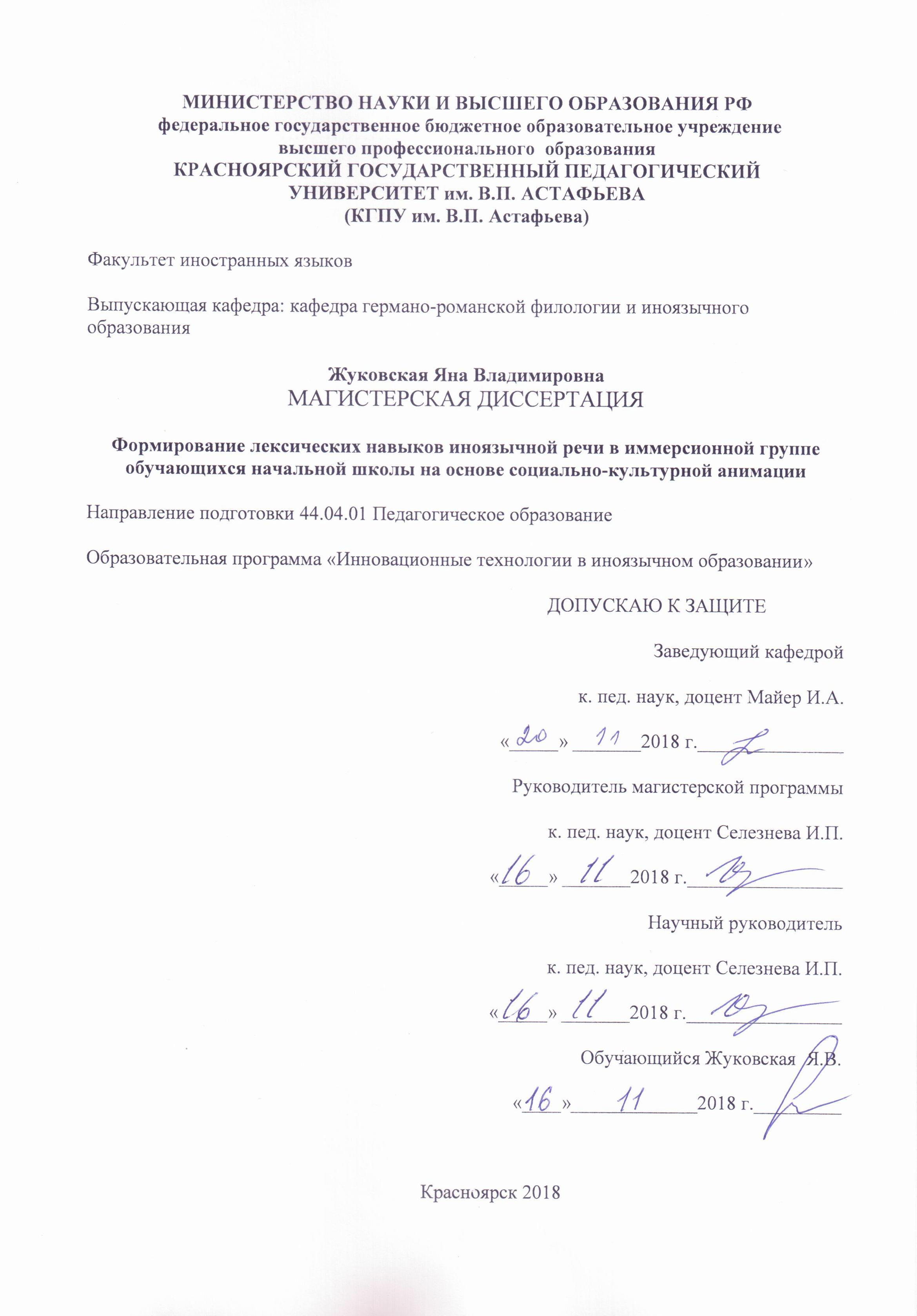 Жуковская Я.В. Формирование лексических навыков иноязычной речи в иммерсионной группе обучающихся начальной школы на основе социально-культурной анимации