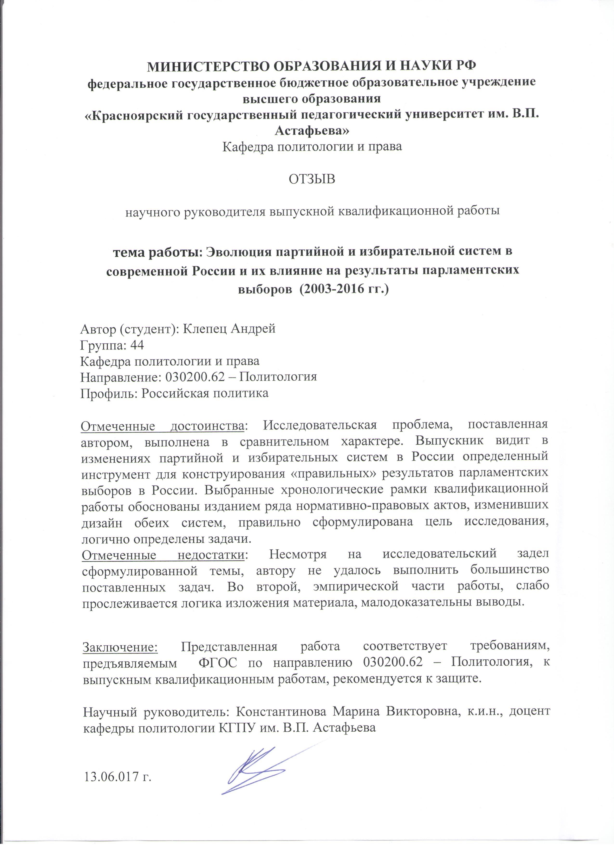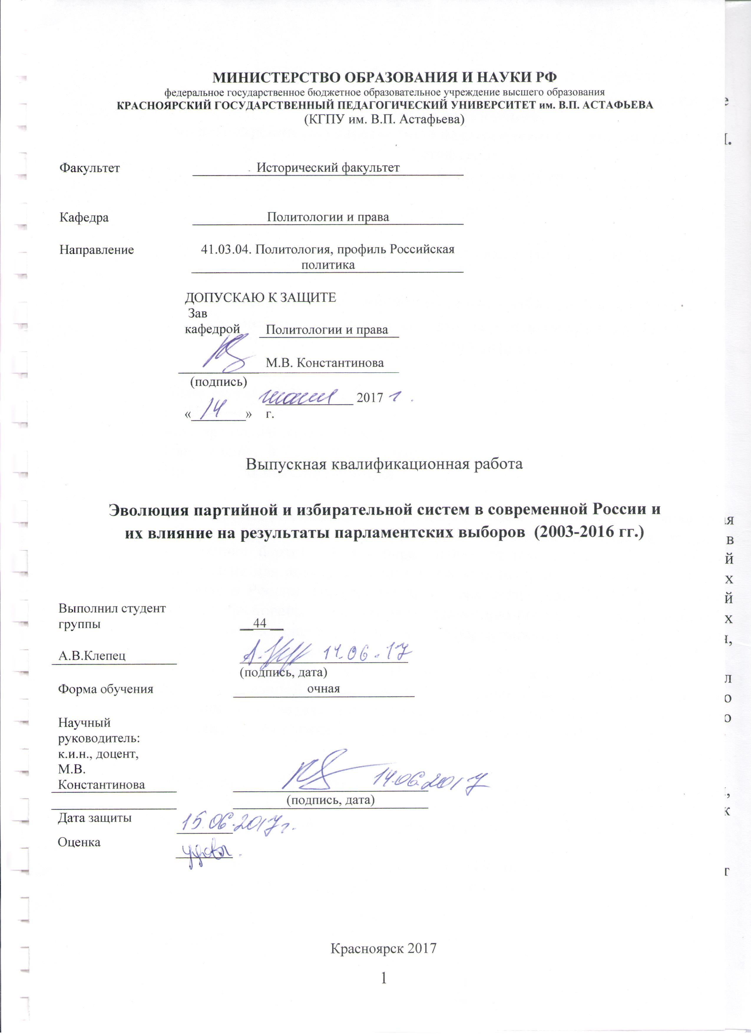 Эволюция партийной и избирательной систем в современной России и ее влияние на результаты парламентских выборов (2003-2016 гг.)