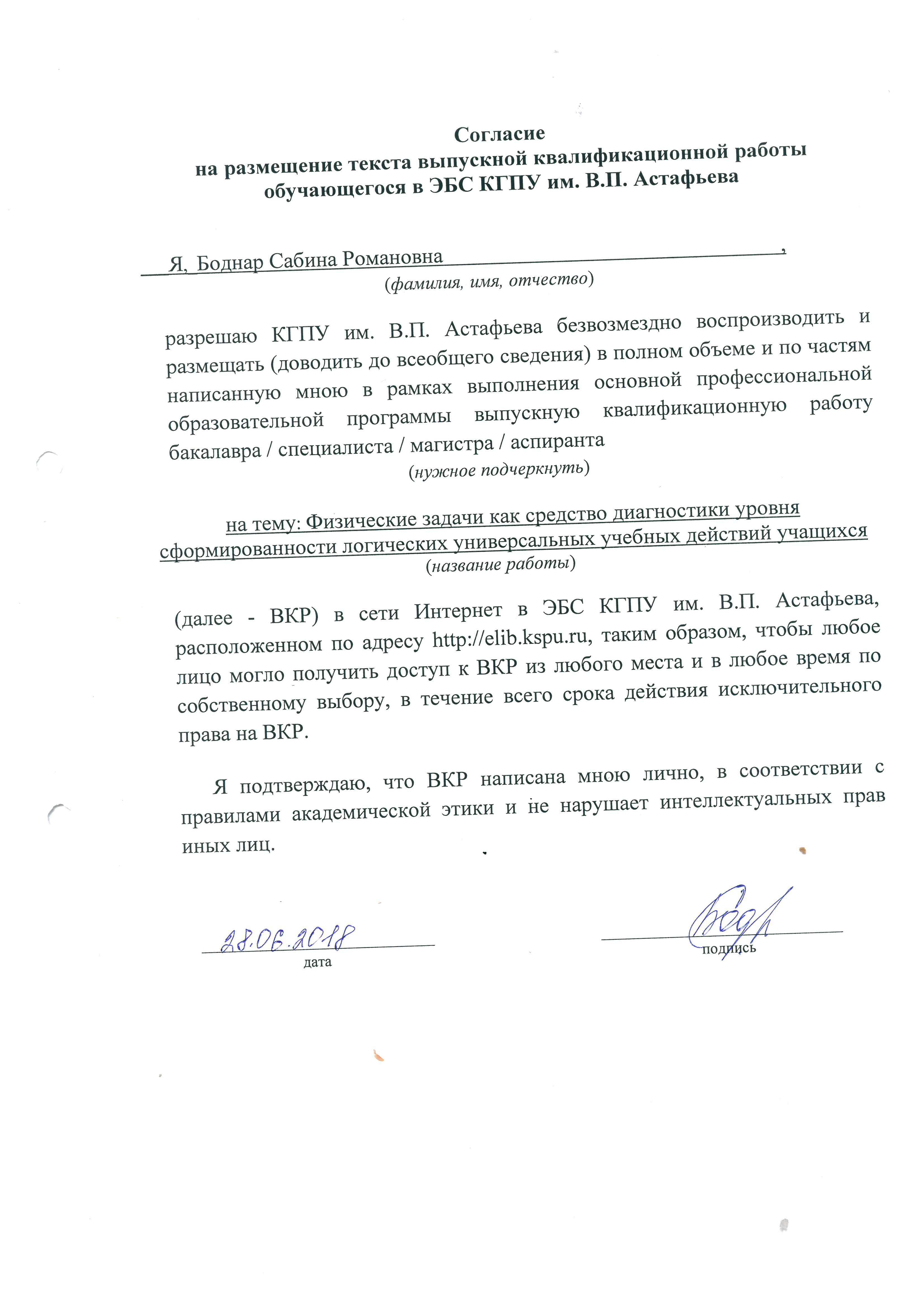 Физические задачи как средство диагностики уровня сформированности логических универсальных учебных действий учащихся
