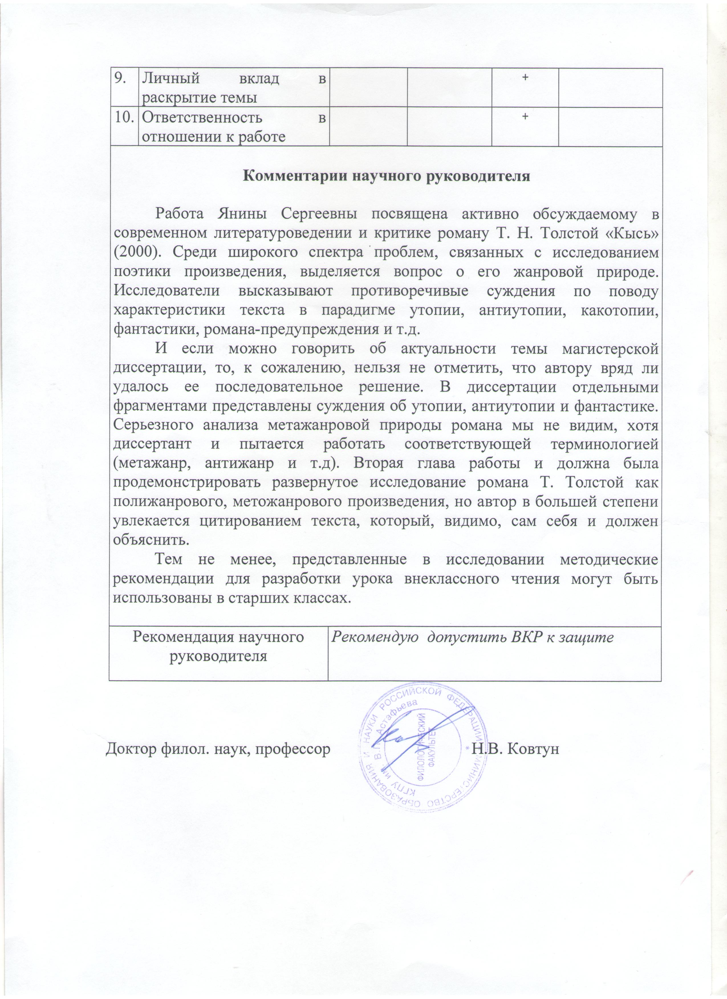 "Диалог" утопии и антиутопии в романе Т.Н. Толстой "Кысь" (материалы к элективному курсу)