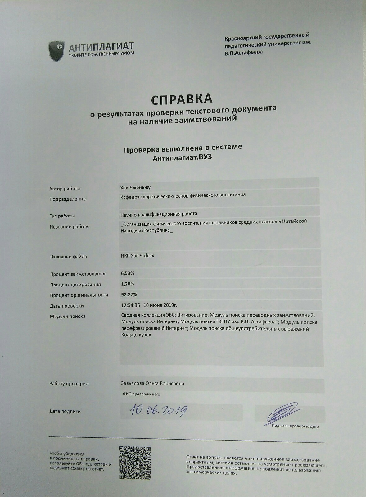 Организация физического воспитания школьников средних классов в Китайской Народной Республике