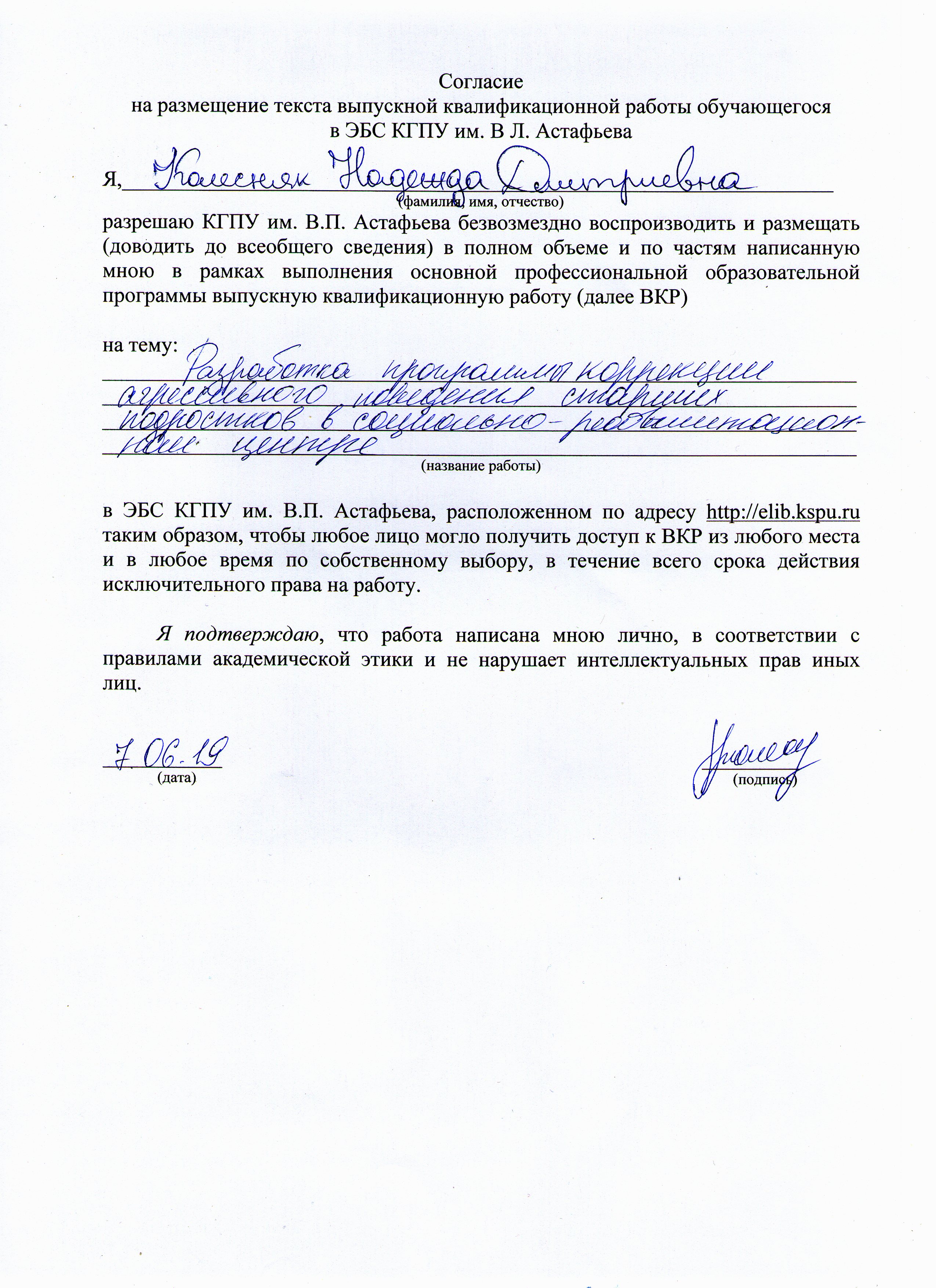 Колесняк Н.Д. Разработка программы коррекции агрессивного поведения старших подростков в социально-реабилитационном центре