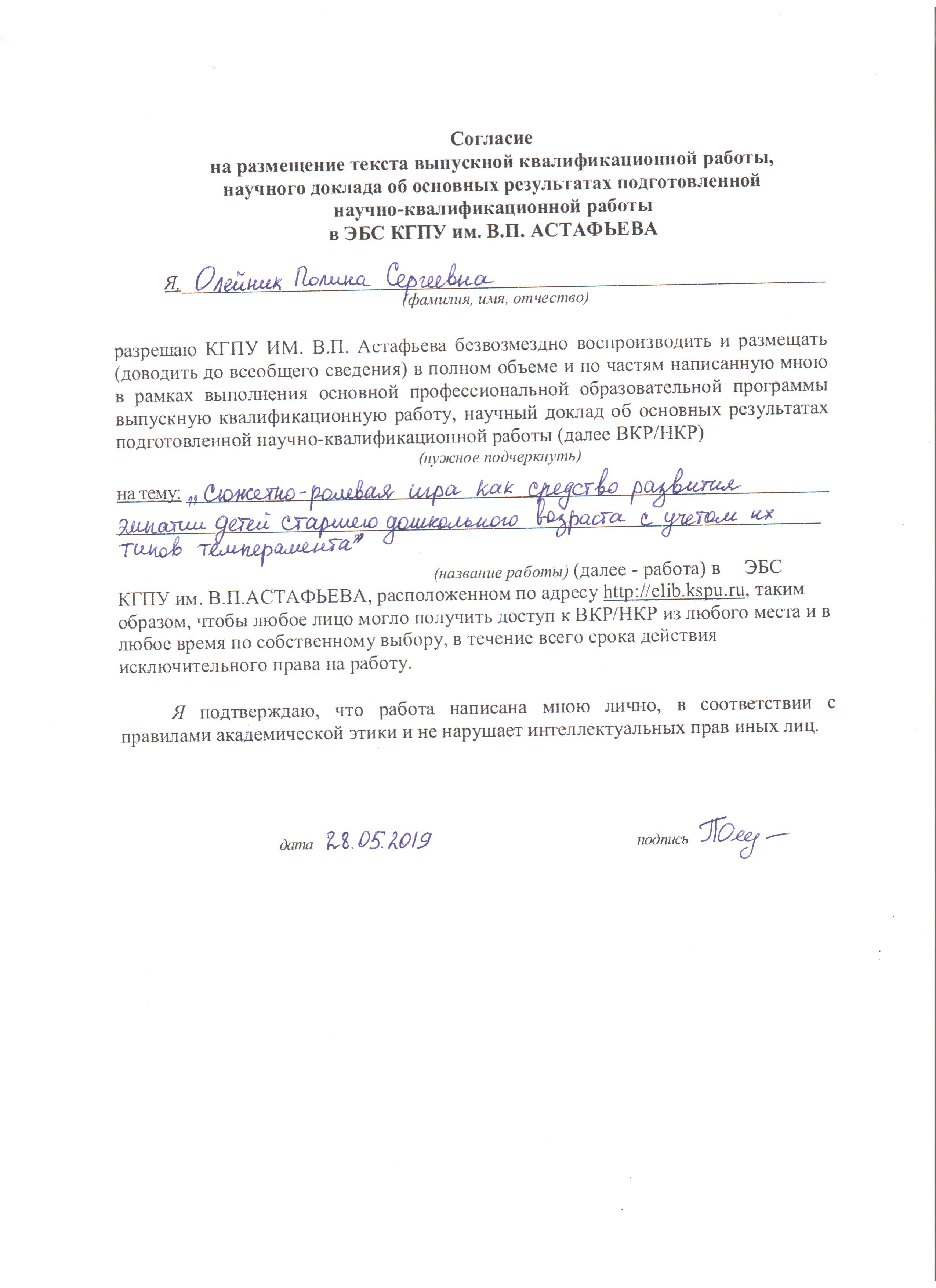 Олейник П.С. Сюжетно-ролевая игра как средство развития эмпатии детей старшего дошкольного возраста с учетом их типов темперамента