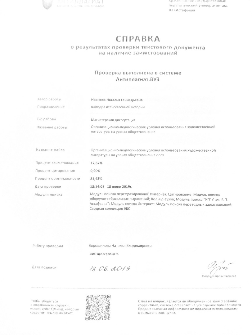 Организационно - педагогические условия использования художественной литературы на уроках обществознания в 8-10 класса.