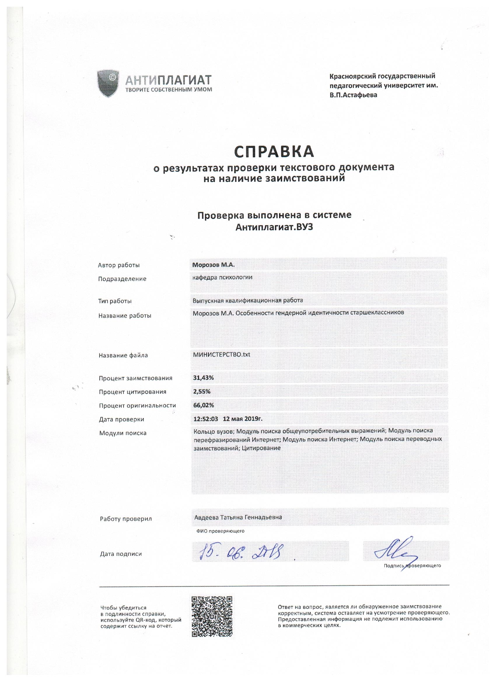 Морозов М.А. Особенности гендерной идентичности старшеклассников