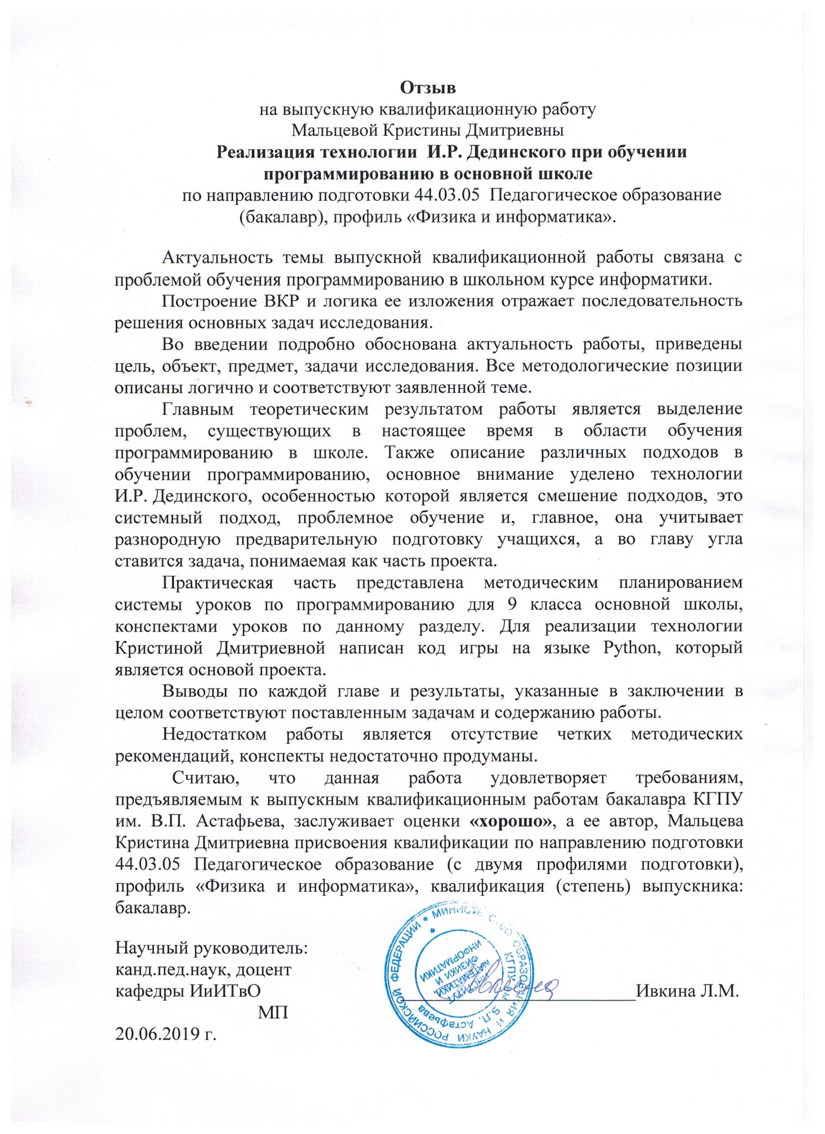 Реализация технологии И.Р. Дединского при обучении программированию в основной школе