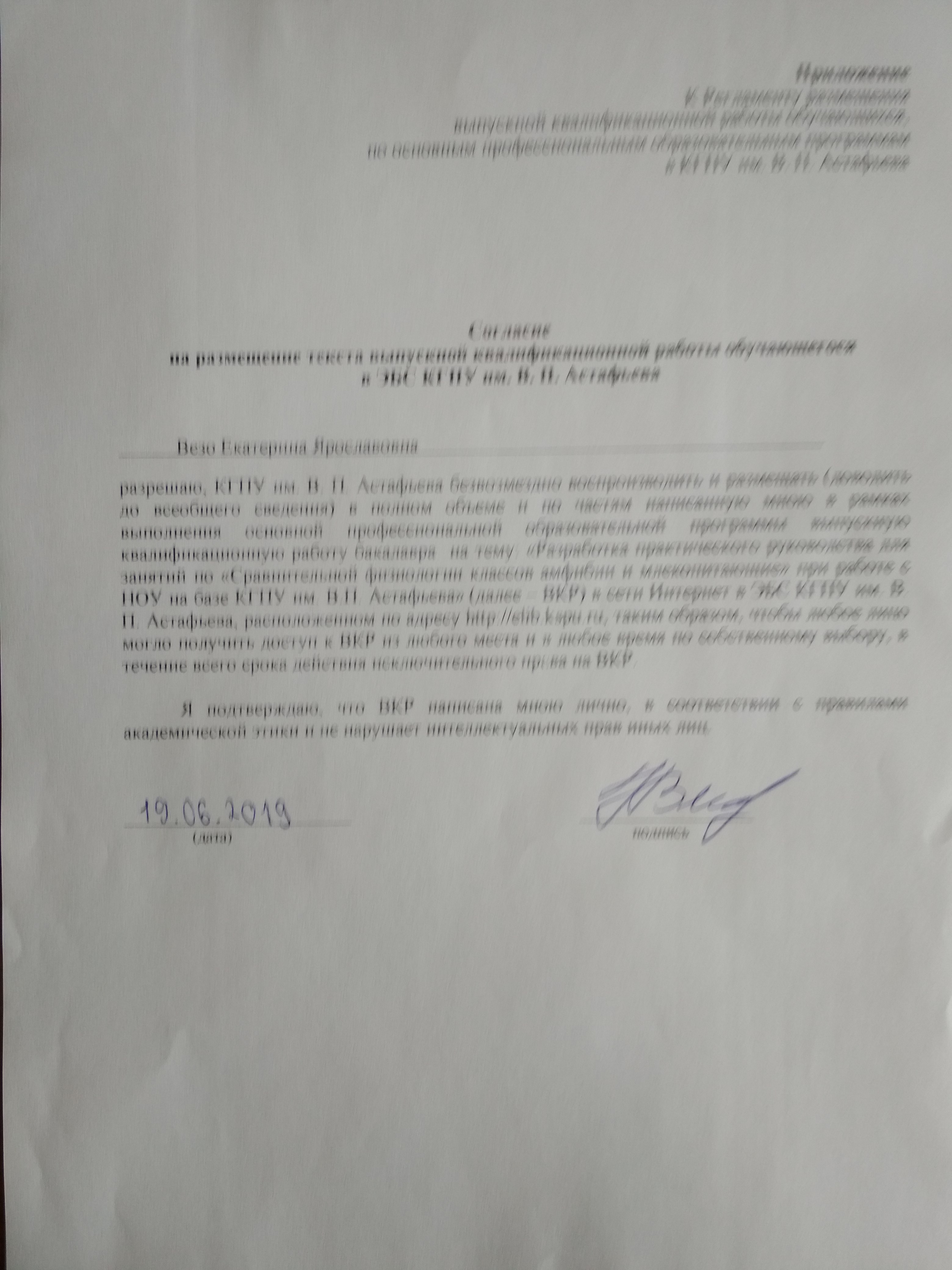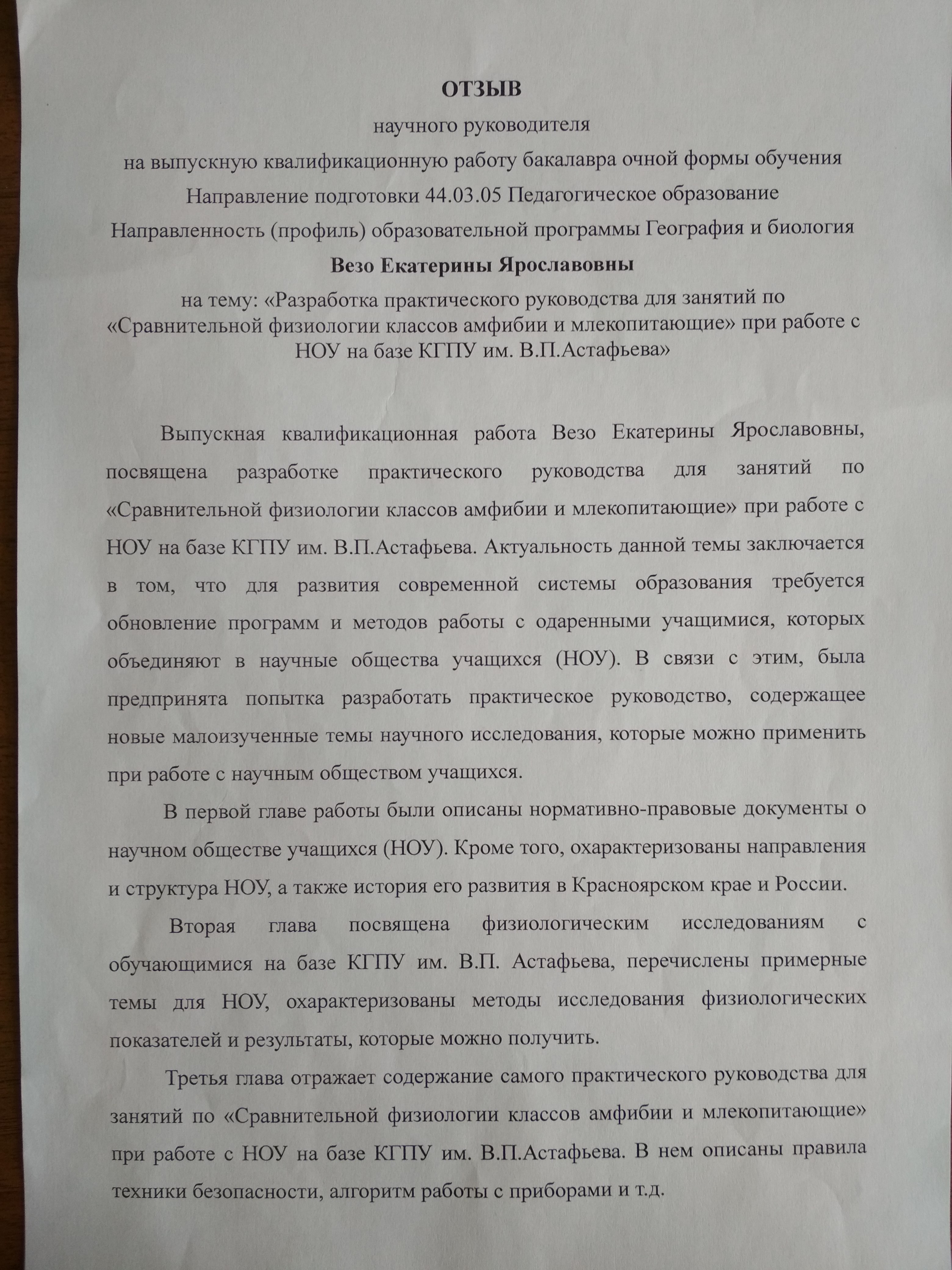 РАЗРАБОТКА ПРАКТИЧЕСКОГО РУКОВОДСТВА ДЛЯ ЗАНЯТИЙ ПО «СРАВНИТЕЛЬНОЙ ФИЗИОЛОГИИ КЛАССОВ АМФИБИИ И МЛЕКОПИТАЮЩИЕ» ПРИ РАБОТЕ С НОУ НА БАЗЕ КГПУ ИМ. В.П. АСТАФЬЕВА
