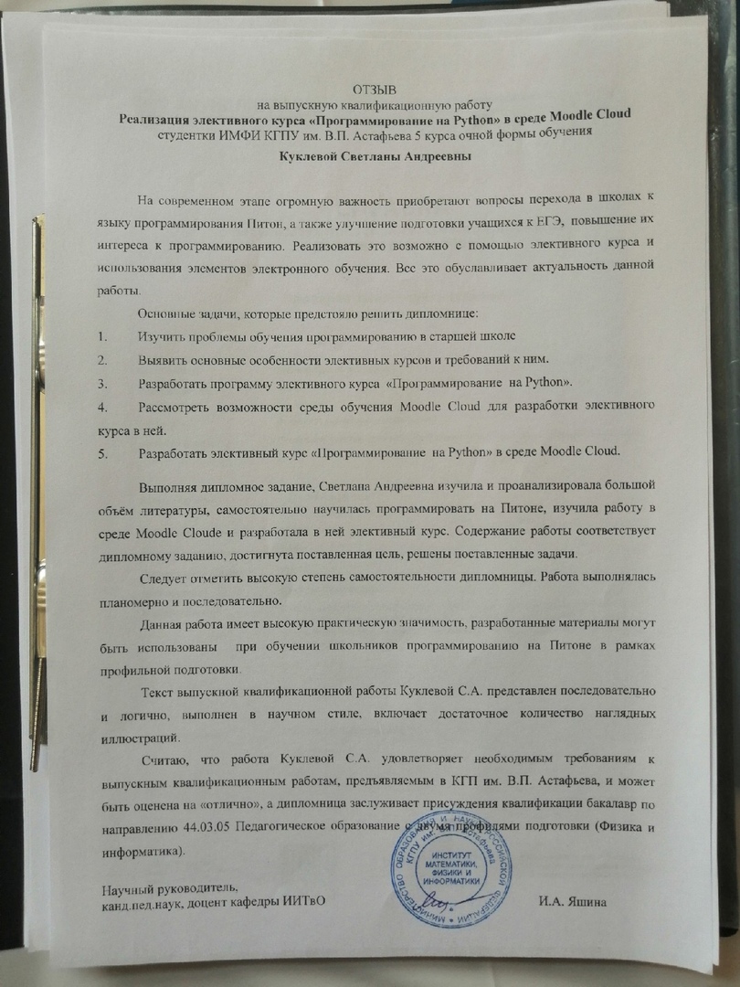 Реализация элективного курса "Программирование на Python" в среде Moodle Cloud
