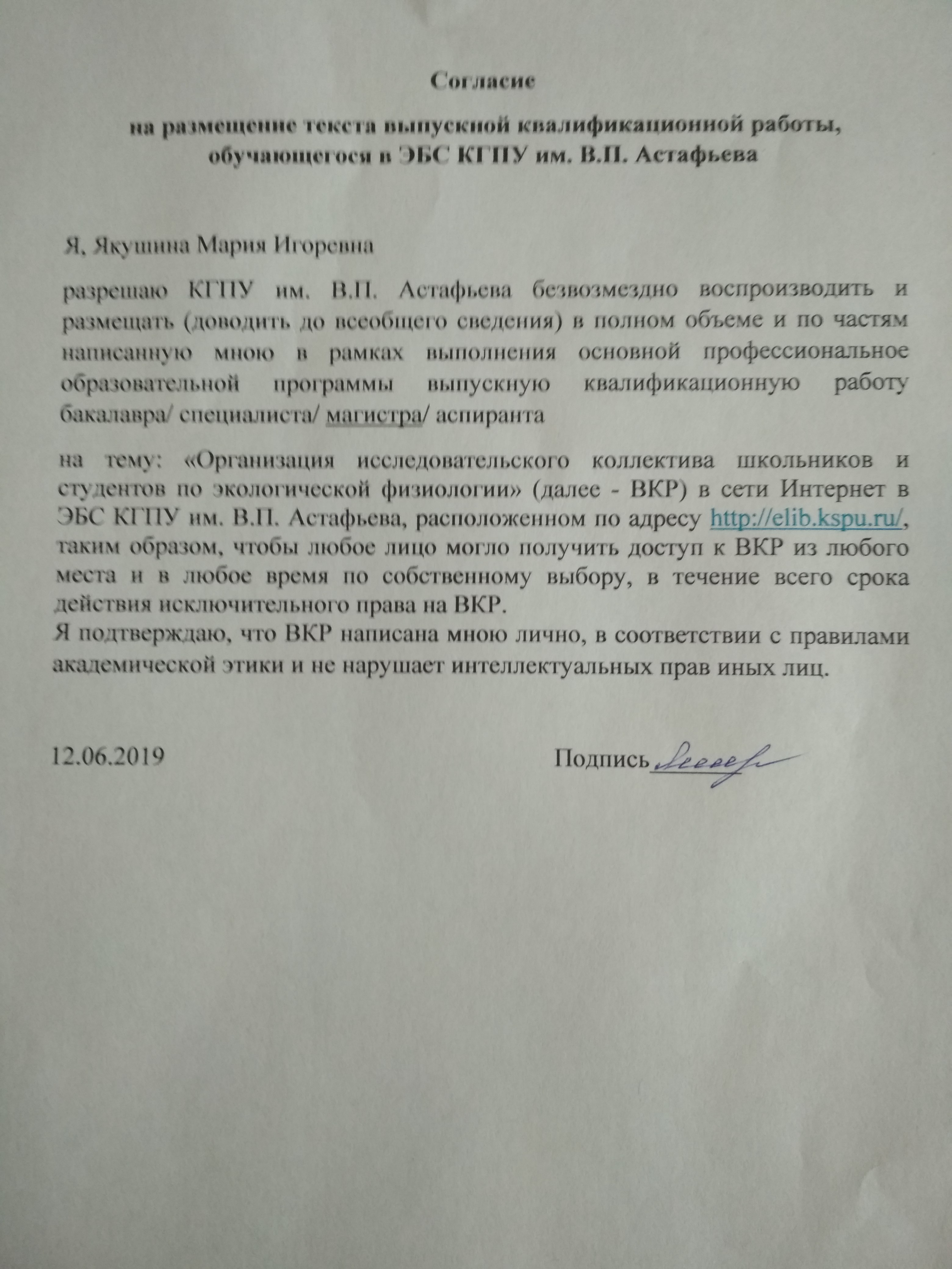 Организация исследовательского коллектива школьников и студентов по экологической физиологии