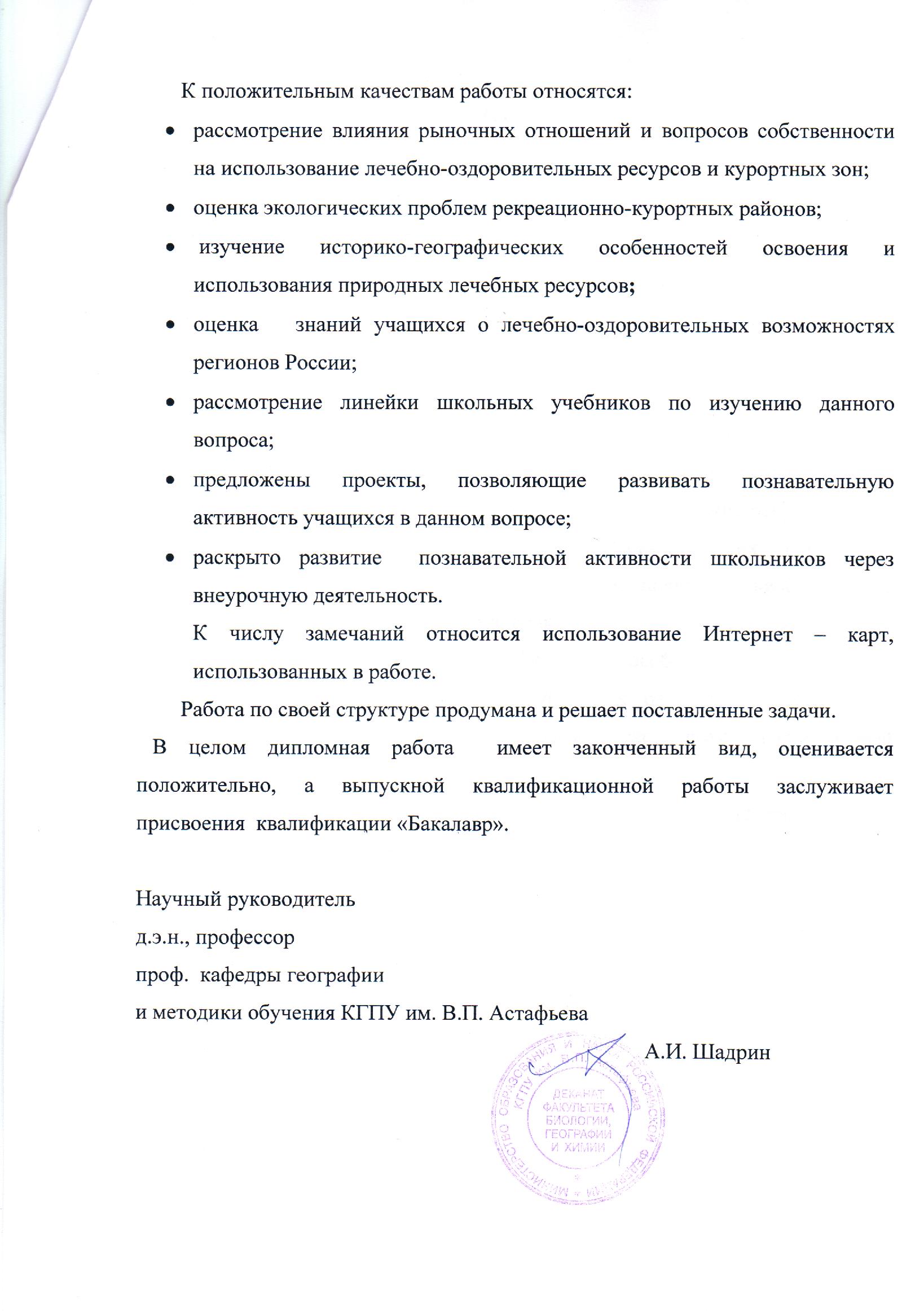 Лечебно-оздоровительные районы, как объекты изучения в школьном курсе географии России