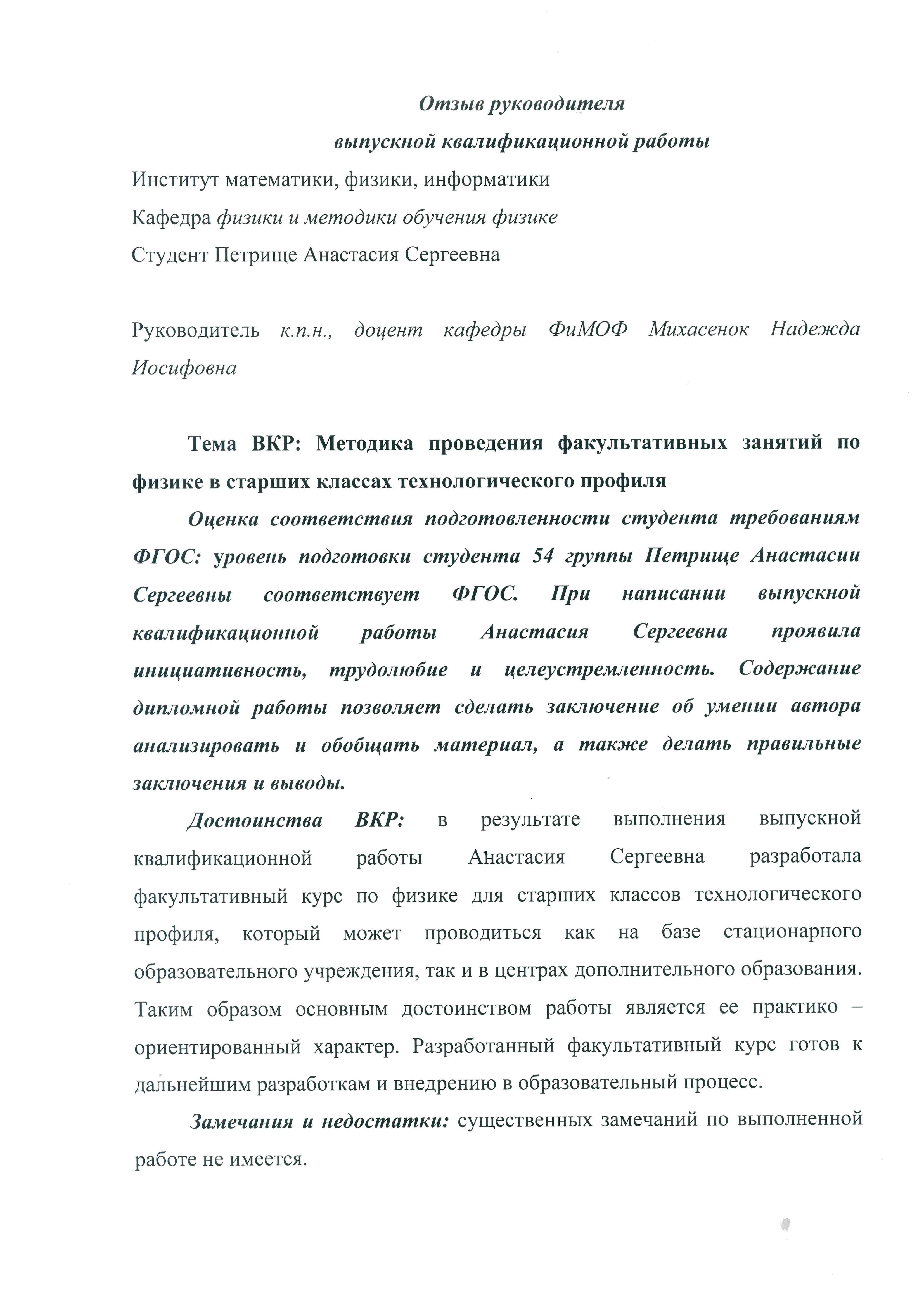 Петрище_Методика проведения факультативных занятий по физике в старших классах технологического профиля