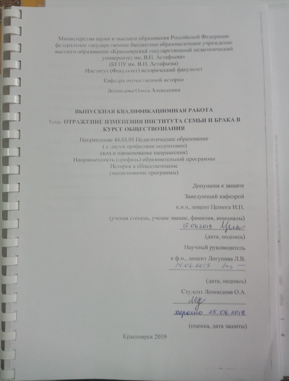 Отражение изменения института семьи и брака в России в XX веке в курсе обществознания в школе
