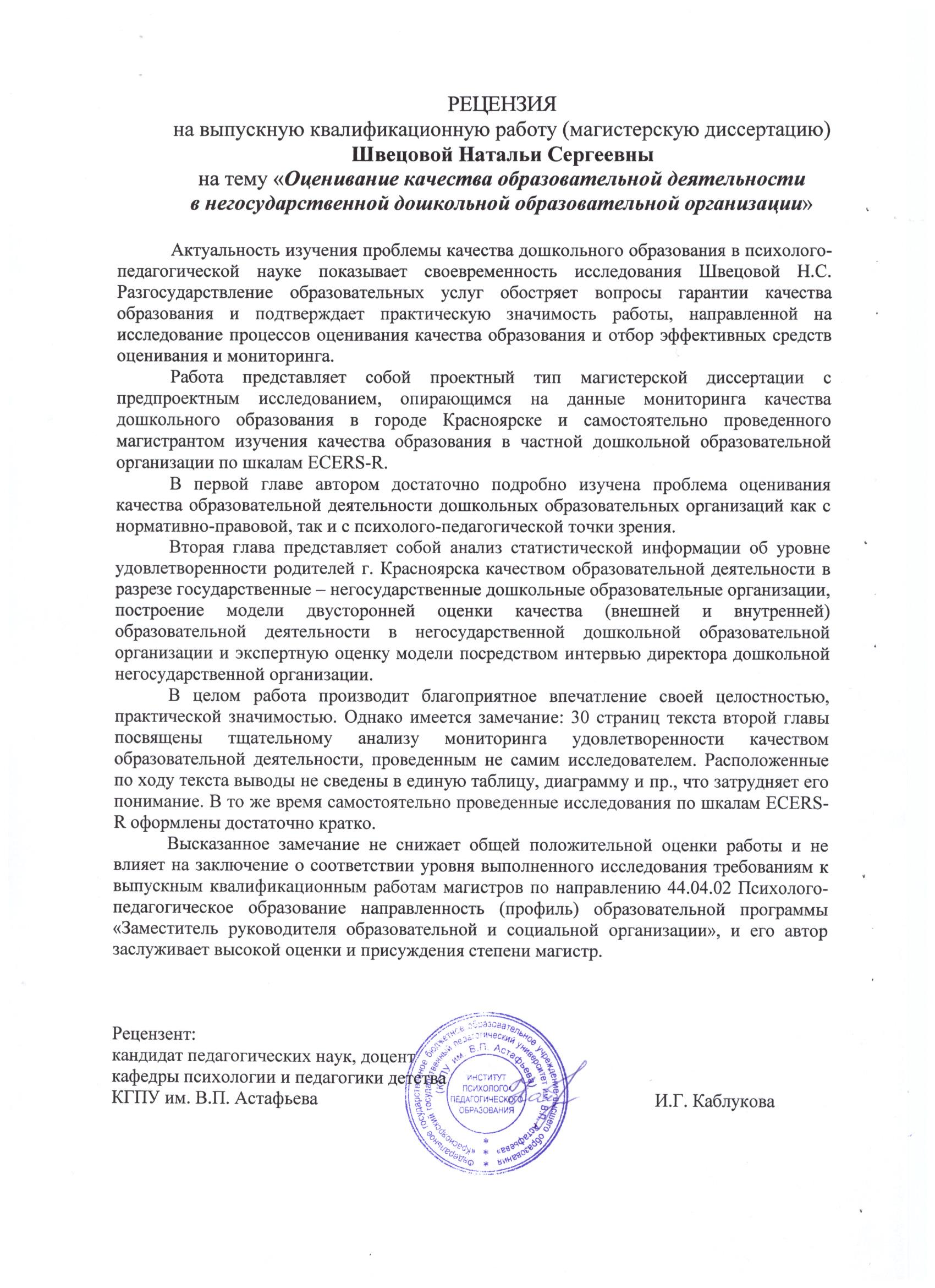 Оценивание качества образовательной деятельности в негосударственной дошкольной образовательной организации