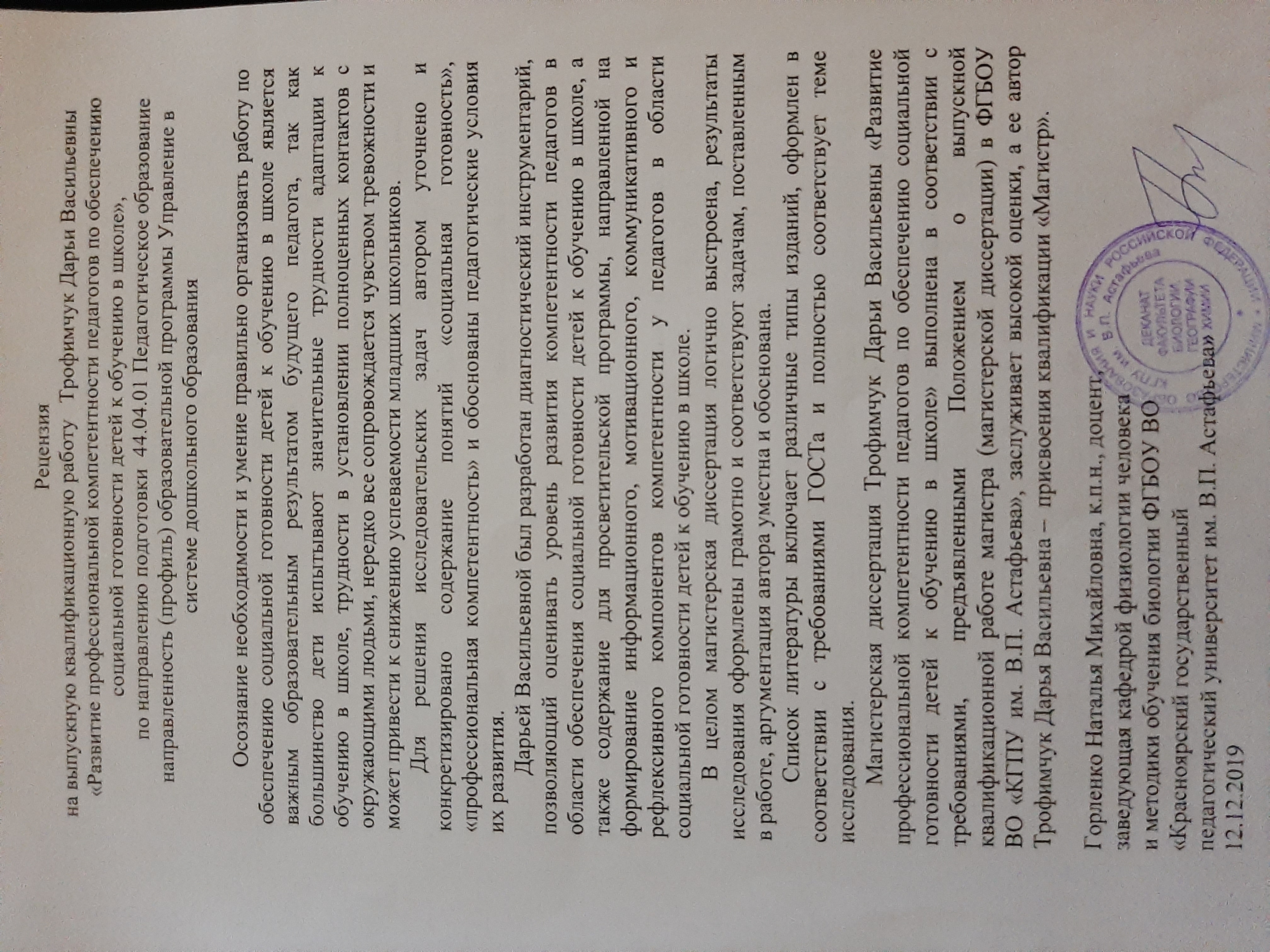 Трофимчук Д.В. Развитие профессиональной компетентности педагогов по обеспечению социальной готовности детей к обучению в школе