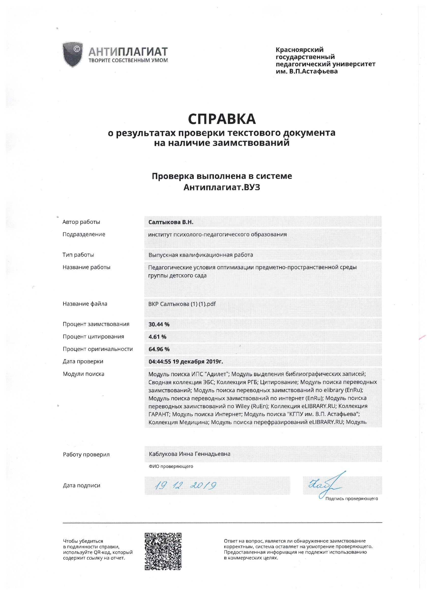 Салтыкова В.Н. Педагогические условия оптимизации предметно-пространственной среды группы детского сада