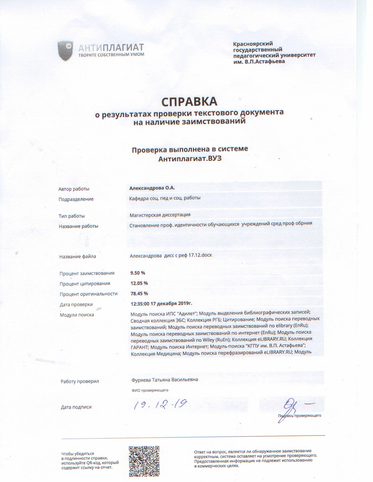 Становление профессиональной идентичности обучающихся учреждений среднего профессионального образования