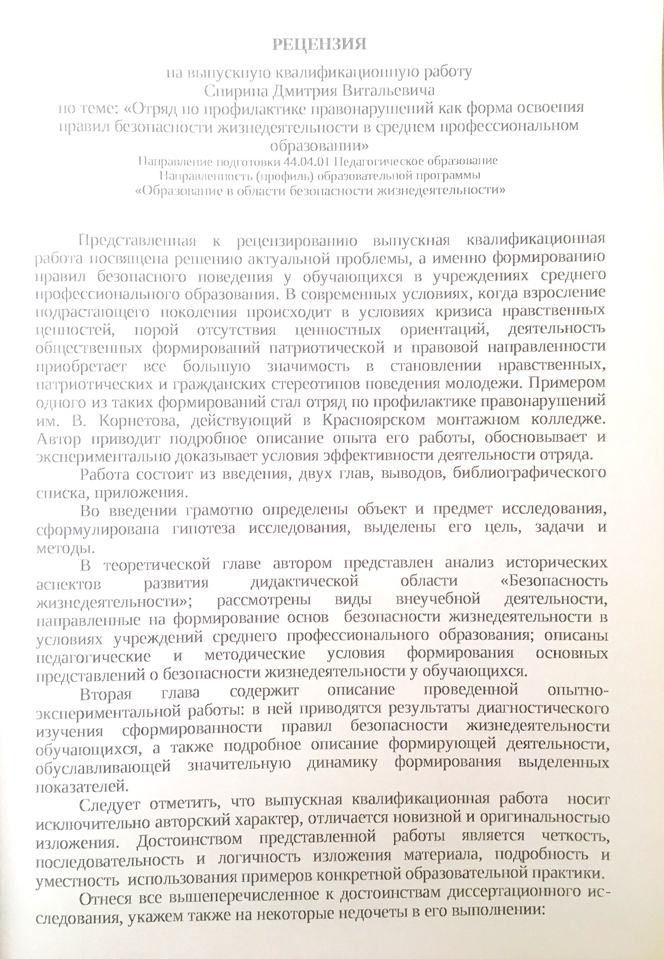 Отряд по профилактике правонарушений как форма освоения правил безопасности жизнедеятельности в среднем профессиональном образовании