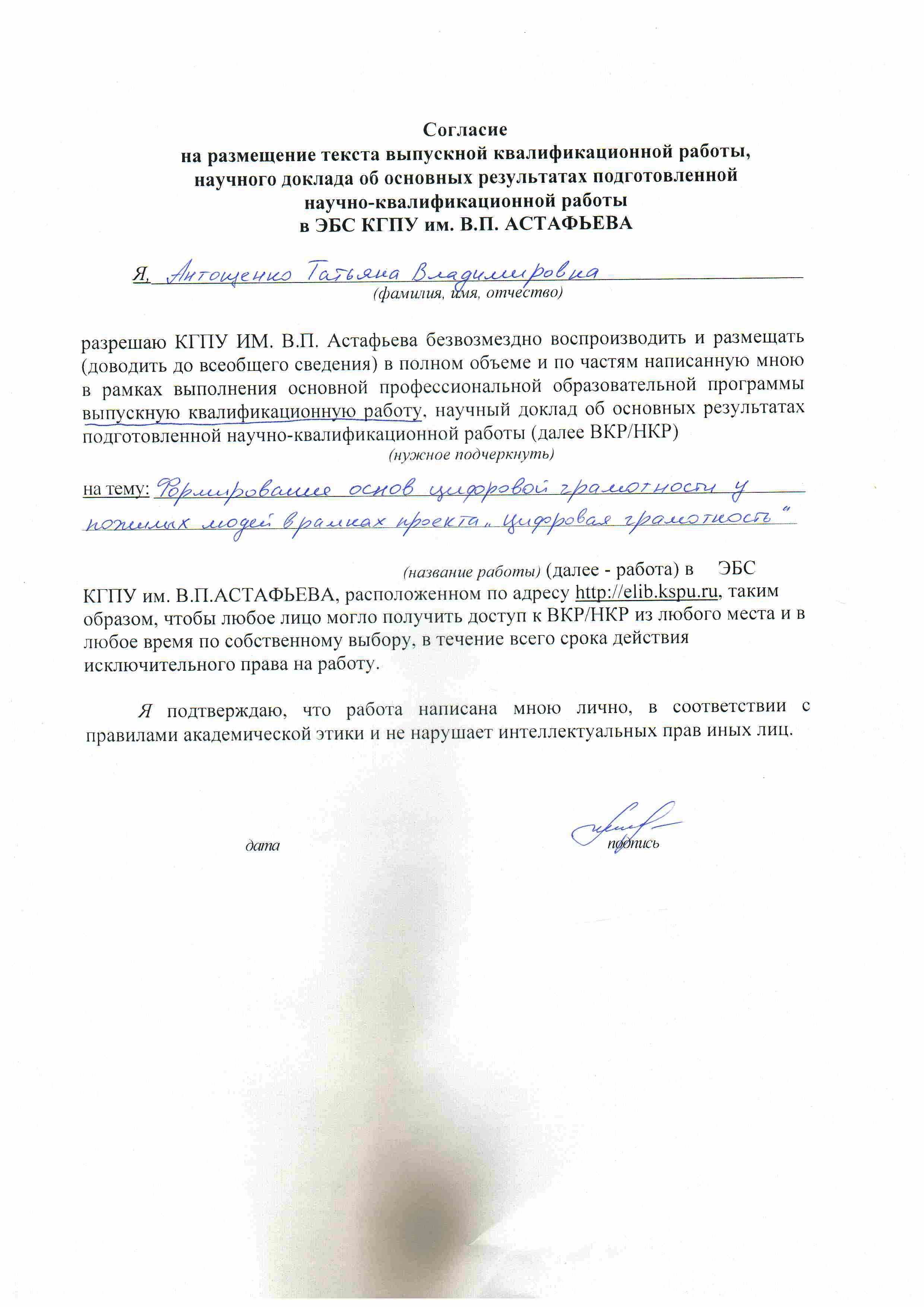 Формирование основ цифровой грамотности у пожилых людей в рамках реализации проекта "Цифровая мастерская"