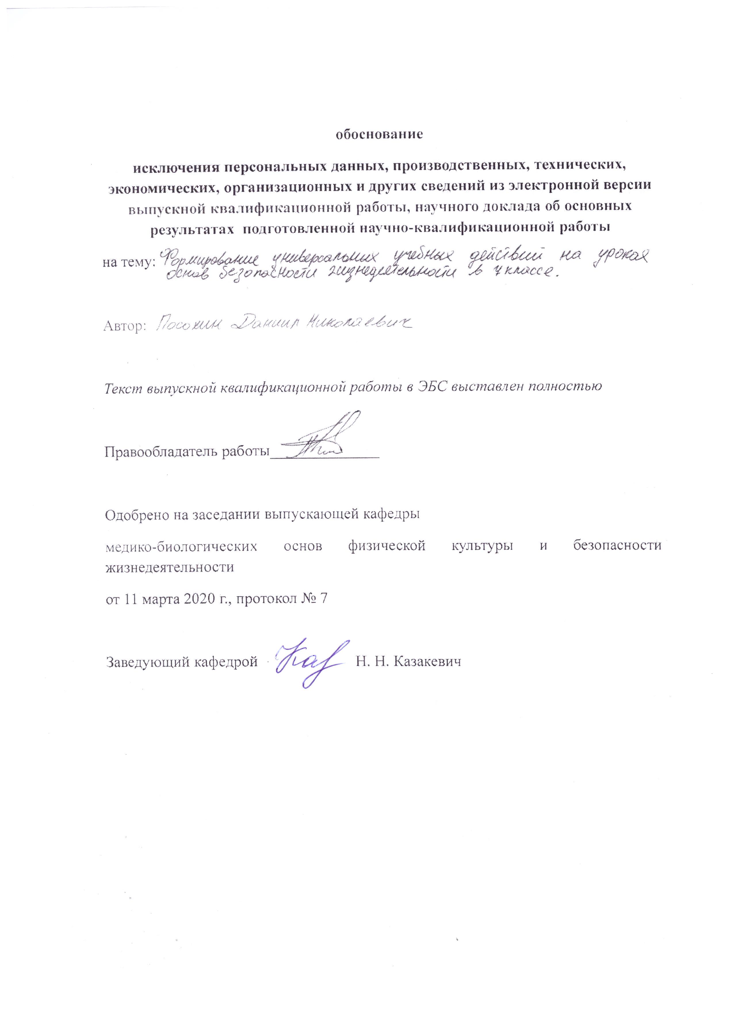 Формирование универсальных учебных действий на уроках основ безопасности жизнедеятельности в 7 классе
