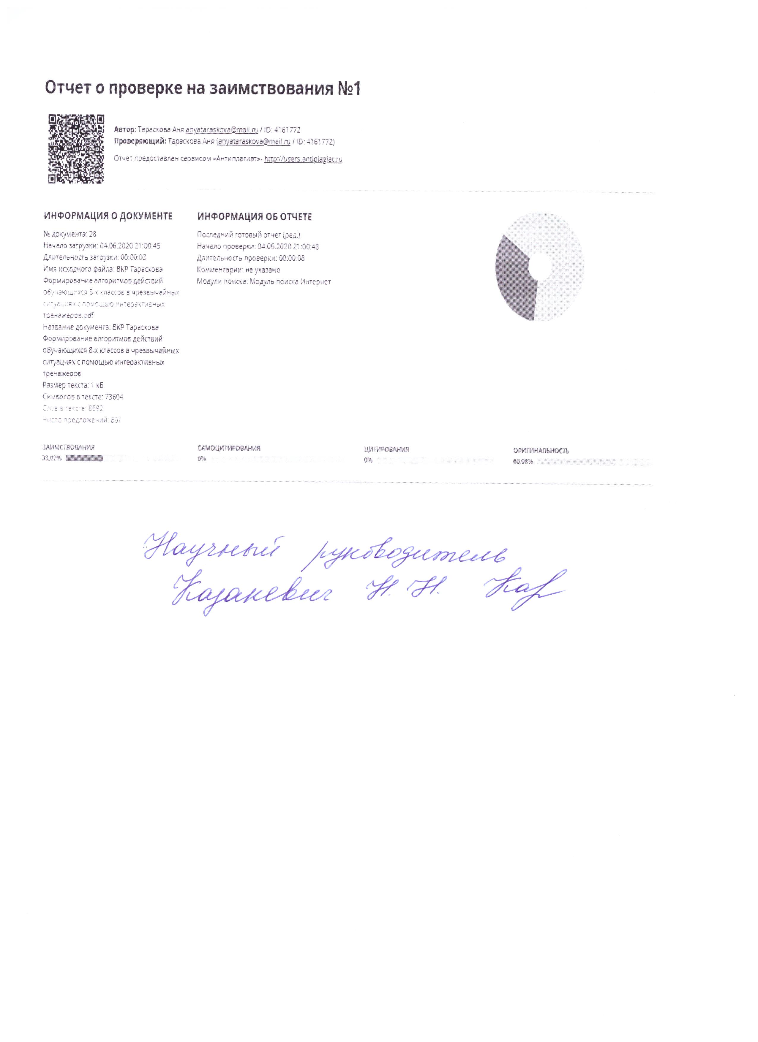 Формирование алгоритмов действий обучающихся 8-х классов в чрезвычайных ситуациях с помощью интерактивных тренажеров